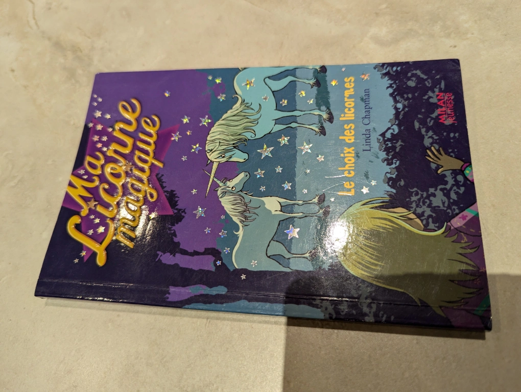French children's book. Paperback. Story about unicorns. Author: Linda Champan. Published by Milan Jeunesse.