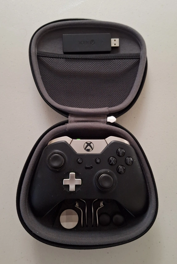 Xbox Elite Series 1 controller. Includes carrying case, extra thumbsticks and paddles, and wireless dongle. Great condition, well maintained and frequently cleaned.