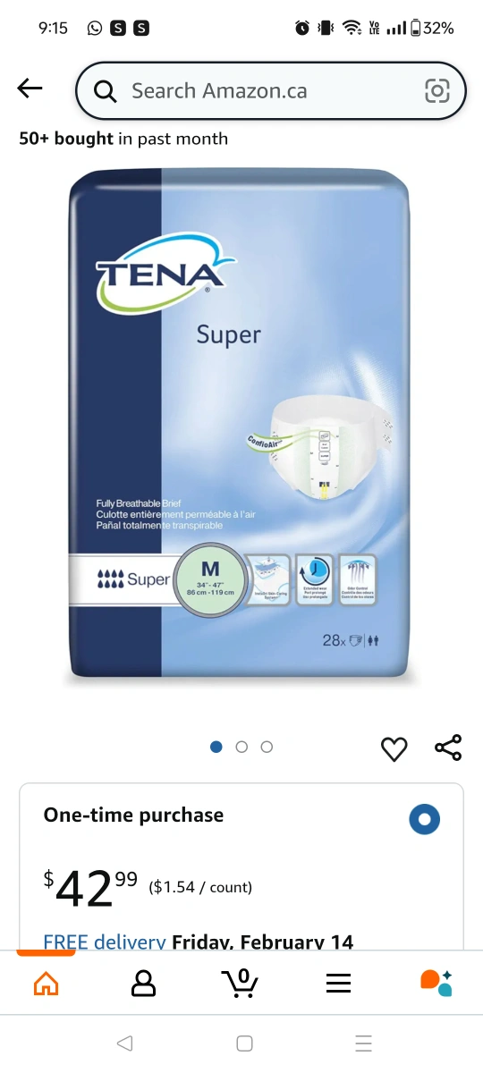 TENA Super absorbent briefs. large size. 28 count package. Fully breathable. Ideal for discretion and comfort.