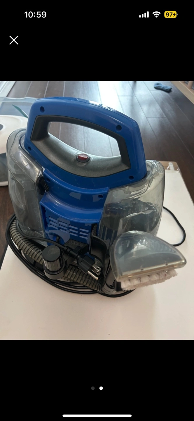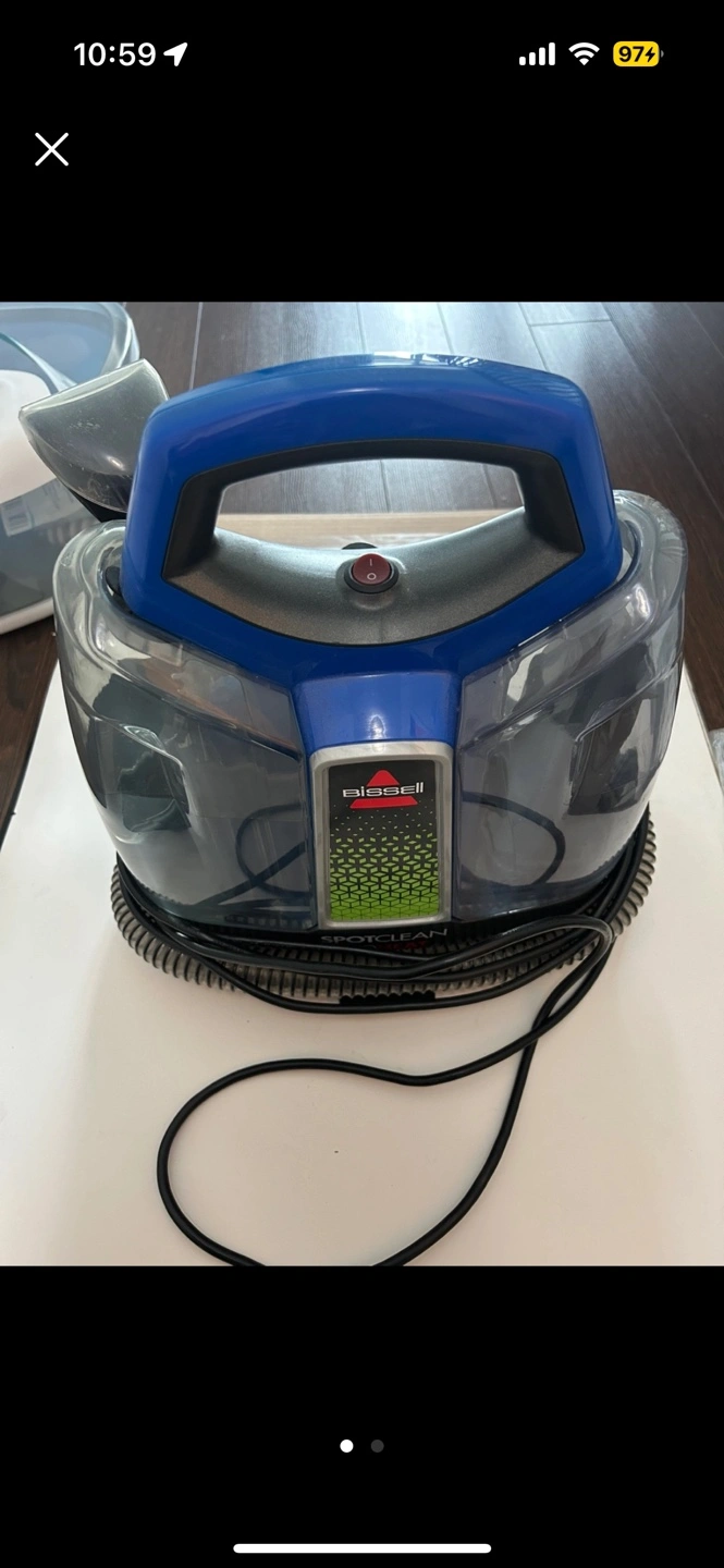 Portable upholstery cleaner. Great for spot cleaning. Includes various attachments. Used, but in greatcondition.
