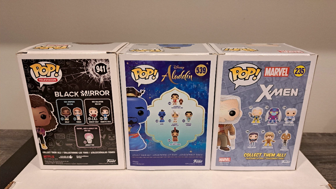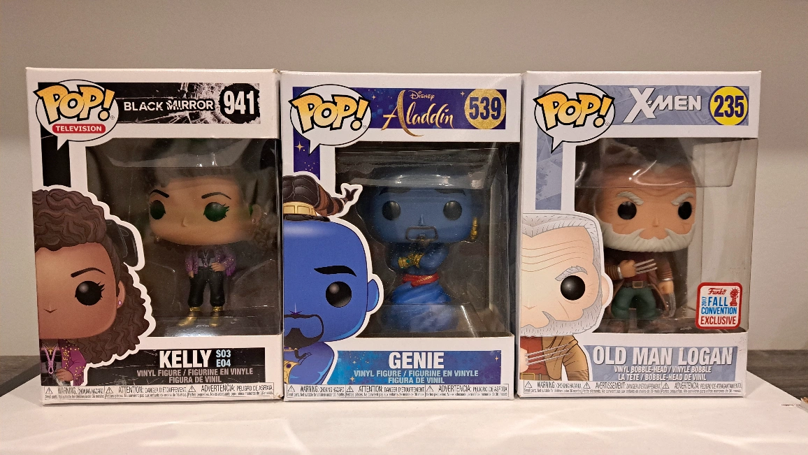 #Funko Pop! Kelly, Black Mirror S03 E04 : $5 Genie, Aladdin : $5 Old Man Logan, X-Men (Funko 2017 Fall Convention Exclusive) : $15 Buy all 3 for $20. Please check photos for details (e.g. tear, wear or crease); the film of Aladdin is loose. Where to meet: (1) Near #MarkhamCathedral, or (2) Near #SherborneBloorEast #YongeBloor (limited pick up dates and time), or (3) #YongeFinch Go Bus terminal (limited pick up dates and time) Item(s) need to find a new home. Don't forget to #CheckOut my other listings!