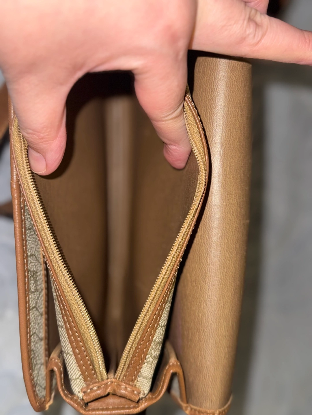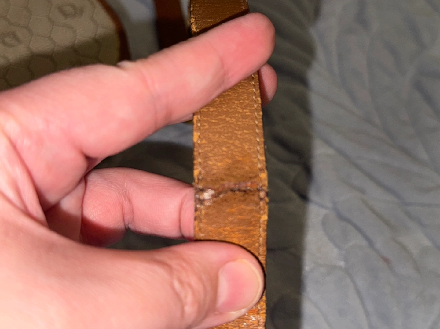 The bag can still be use as is however the leather part has lot of damage, you can take it to cobbler for repair, the strap has tears on it the nice thing about this bag is it has a detachable pouch inside like 2 in one bag.