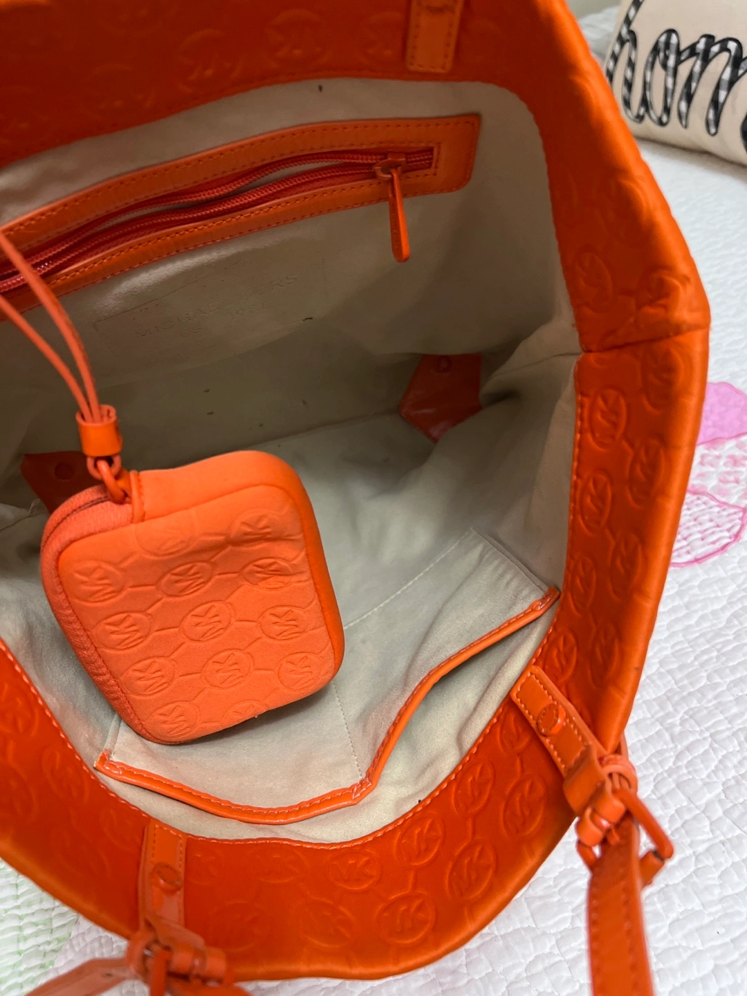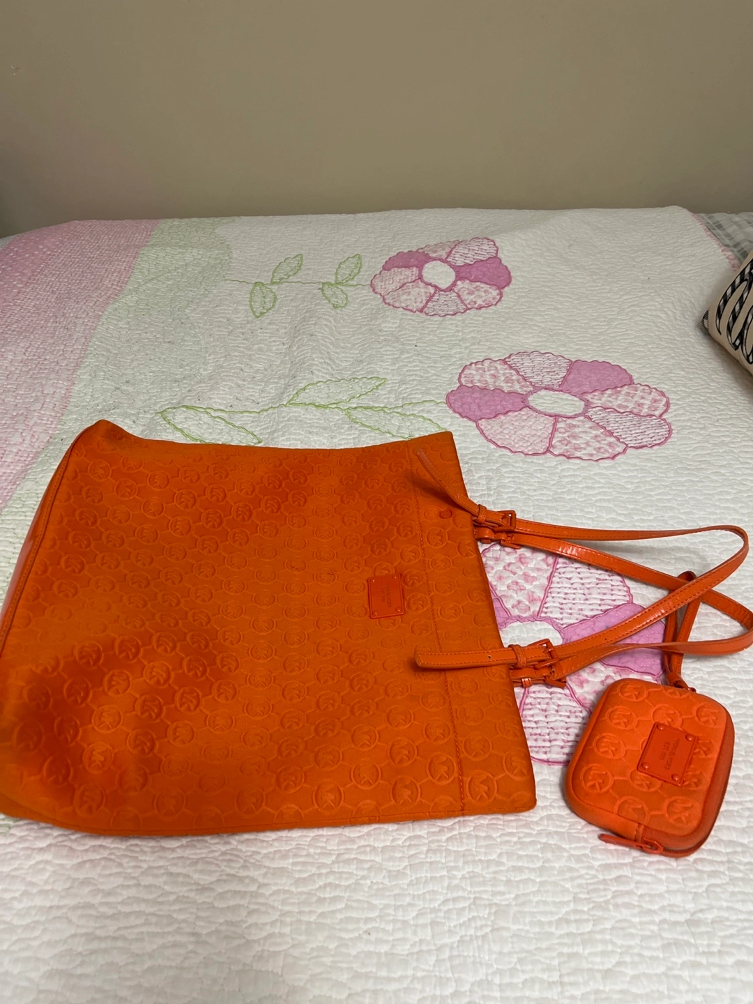 Michael Kors Orange Tote Bag with Matching Pouch
