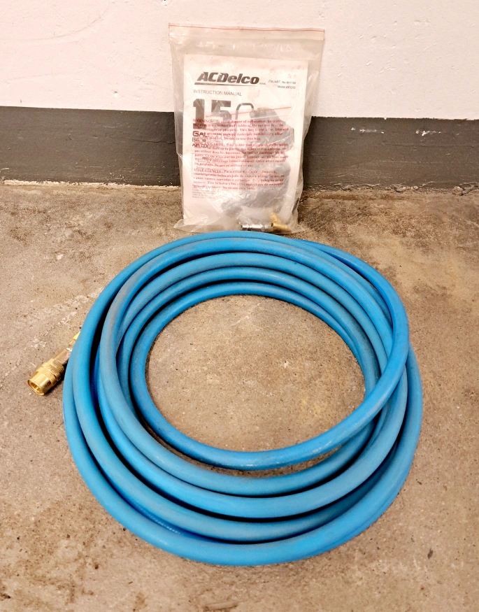 15 gallon air compressor. Includes air hose, instruction manual and a new bottle of compressor oil. Great for various tasks around the house or garage.