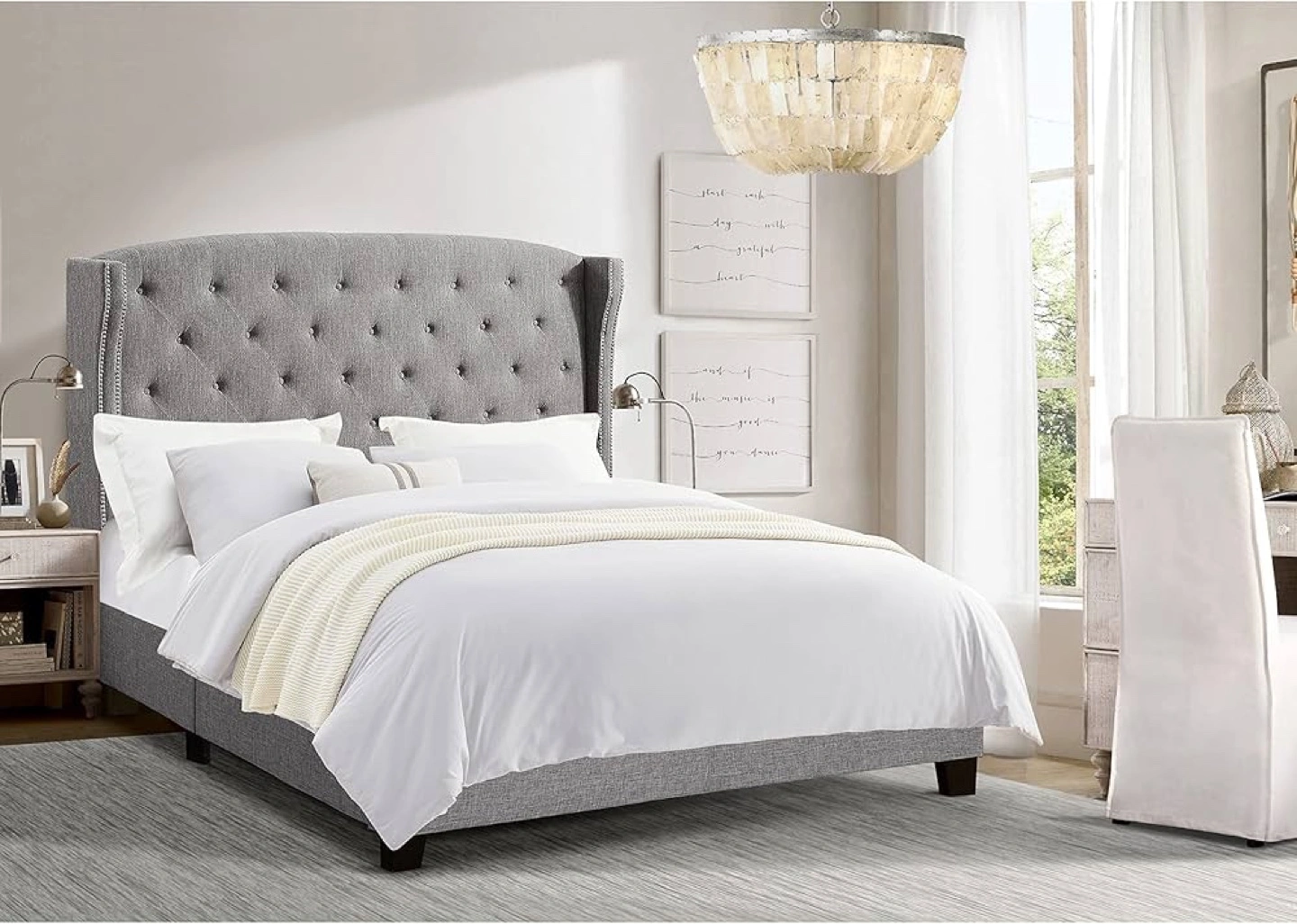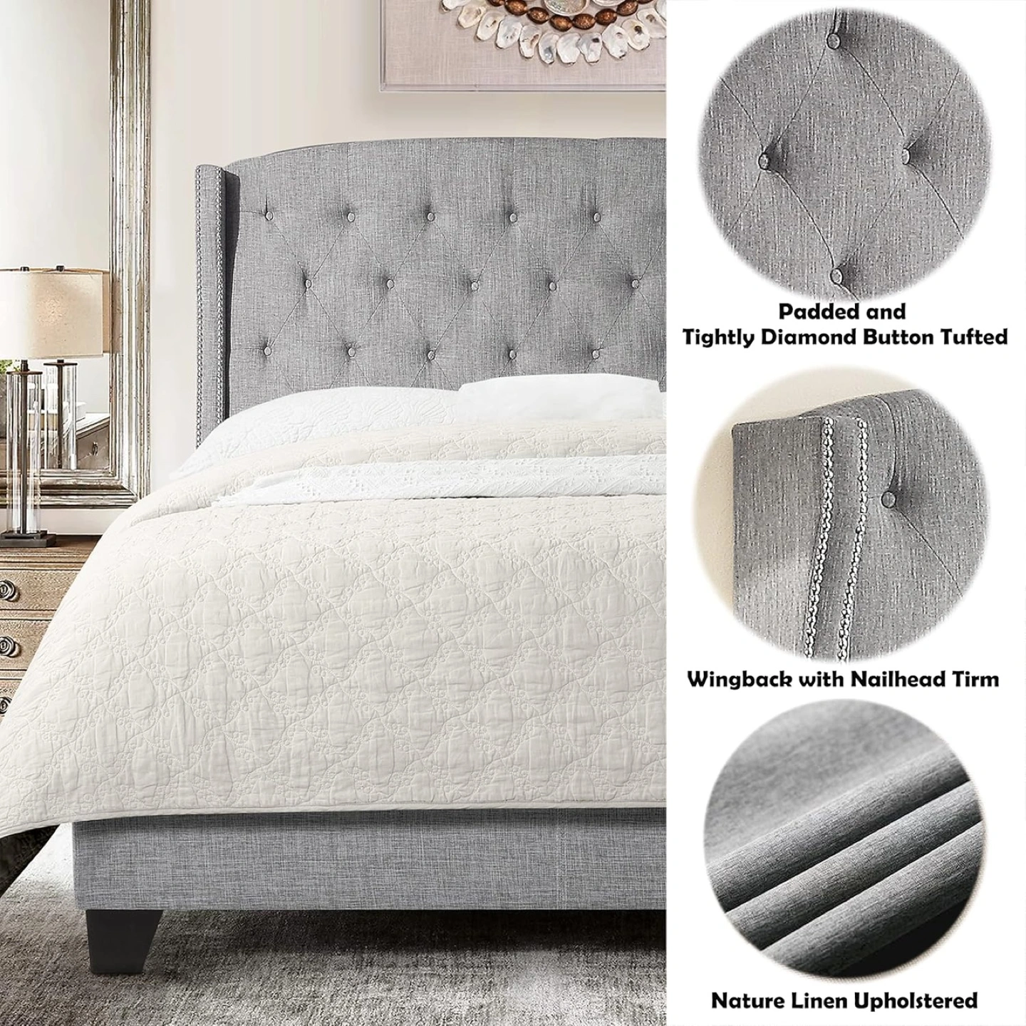 Queen Grey Wingback Upholstered Platform Bed ▫️BRAND NEW