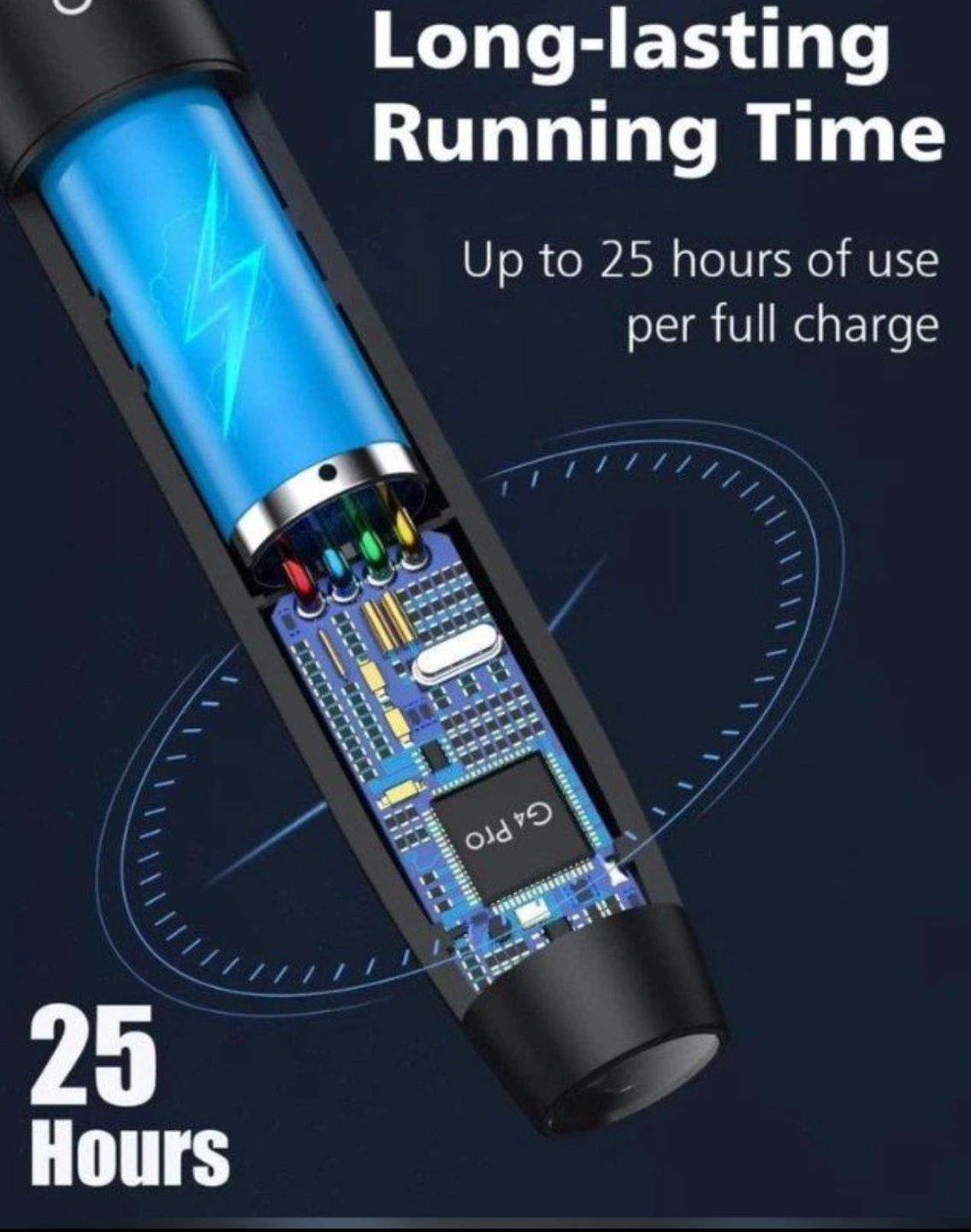 Battery life - Rechargeable lithium-ion battery (up to 25 hours of use per charge).