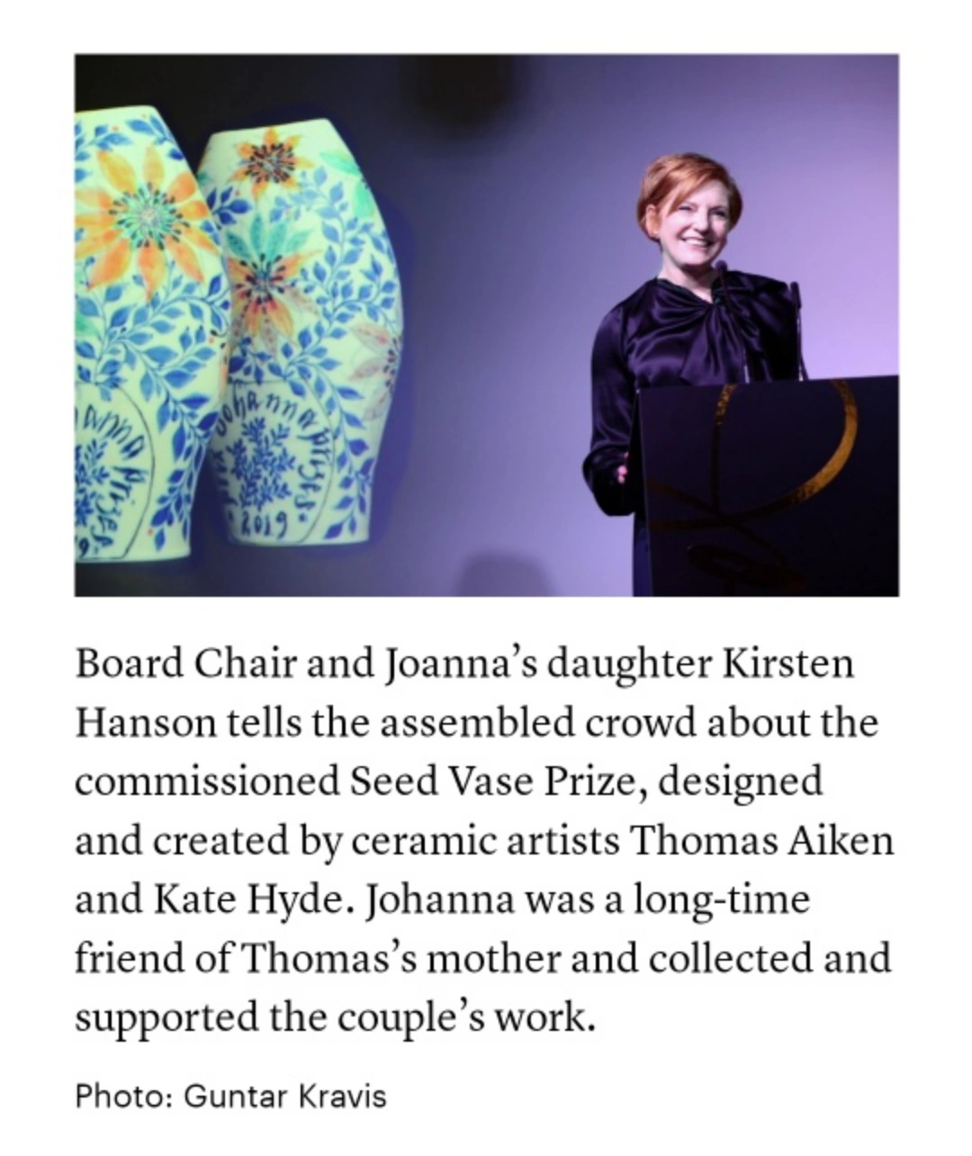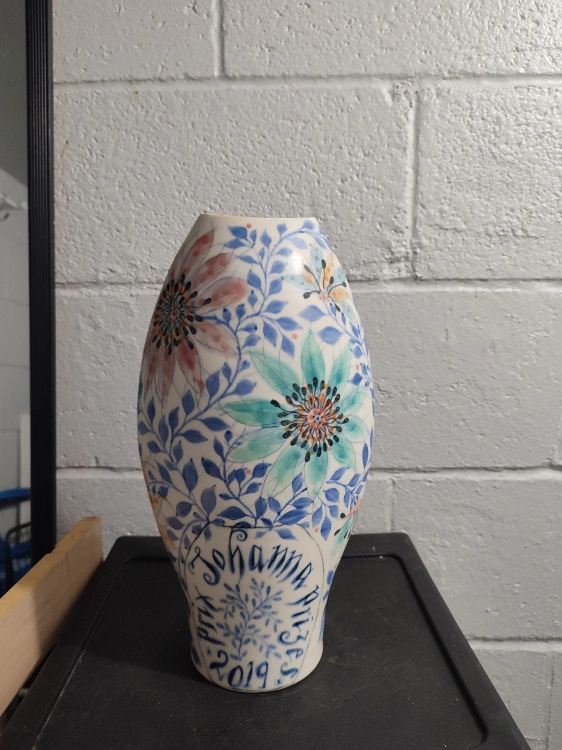 Unique ceramic vase by Thomas Aitken & Kate Hyde commissioned and made specifically for the arts awards by Johanna prix 2019.