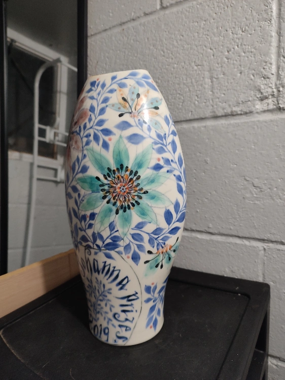 Similar pieces by the artists go for ~130-230$(see pictures). Features hand-painted floral pattern. Beautiful addition to any home, great collectors piece. Priced to sell!