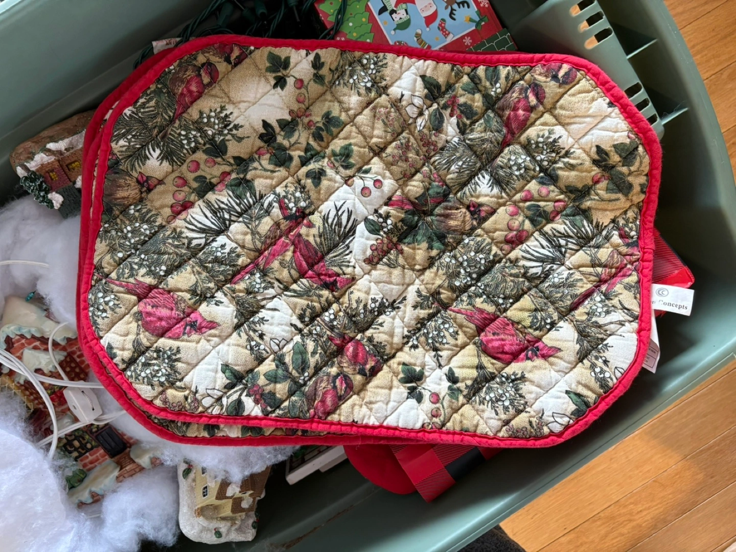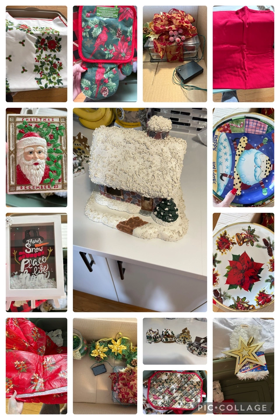 26$10 FOR EVERYTHING - CAN DELIVER IN FENELON OR LINDSAY ALL GREAT & GOOD CONDITION - MUST TAKE ALL -APPROXIMATELY 24 ITEMS - SF HOME - 2 cotton tablecloths (60/102 I think) - 1 plastic tablecloth (not sure size) - 4 small village houses - 1 large village house with base and opening for light - 1 vase with decor - 1 glass box the lights up - 1 oven mitt set (cardinals) - 3 cardinal placemats - 2 Christmas themed plates (glass & plastic) - 1 plastic star topper - 1 white garland - 2 table decor (Santa and snowman)