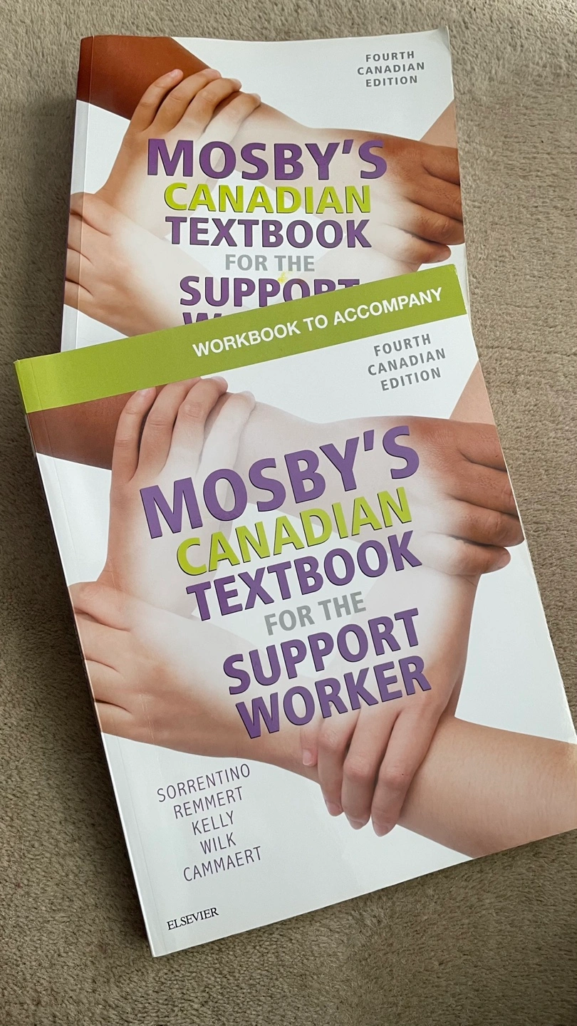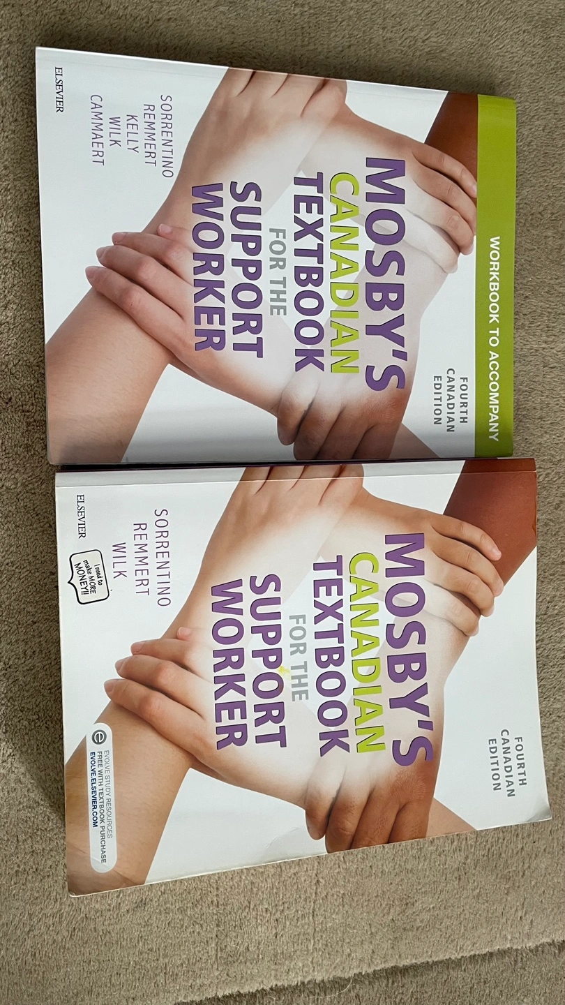 Textbook and workbook for support workers. Fourth Canadian edition. Excellent condition. Authors: Sorrentino, Remmert, Kelly, Wilk, and Cammaert. Publisher: Elsevier. Both of them it yours!