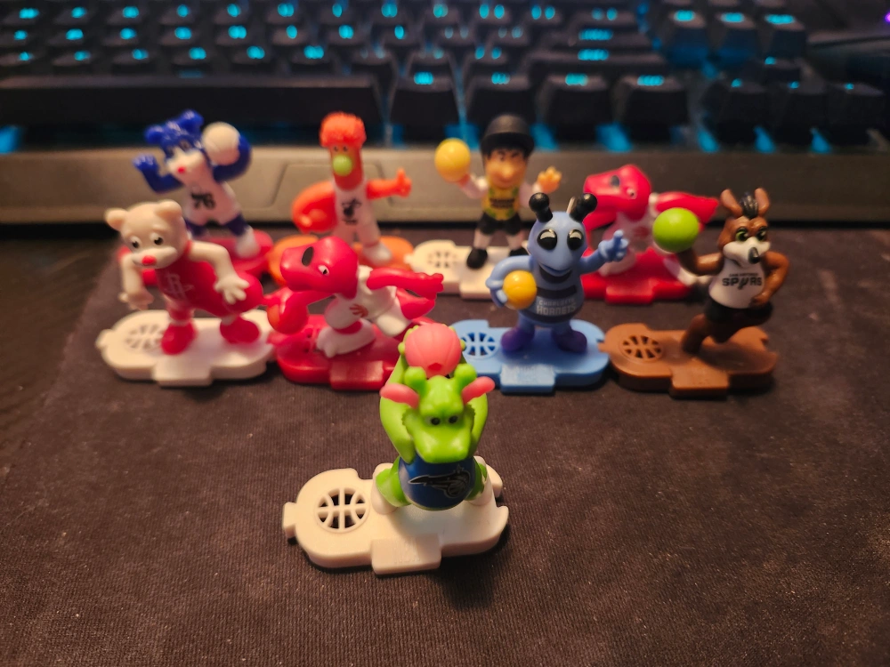 359Set of collectible NBA team mascot figurines. Various mascots included. Small, plastic toys. Great for collectors.