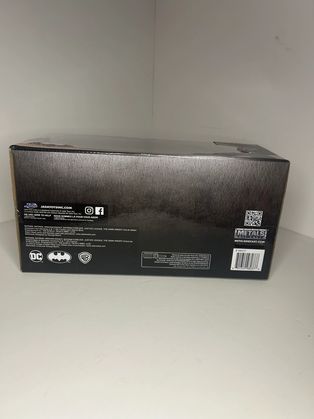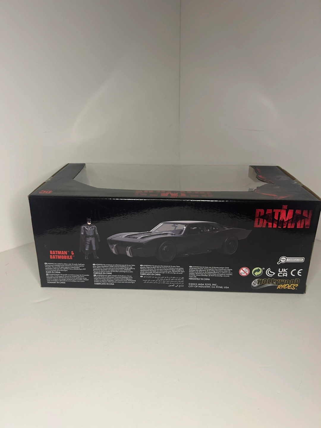 New in box. Jada Toys diecast collectible. Features Batman and his Batmobile from The Batman 2022. Detailed model. Great for collectors. 1/24 scale.