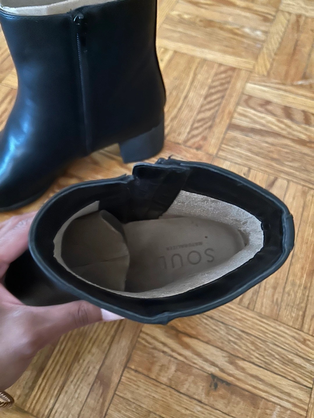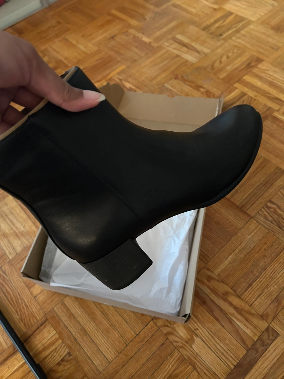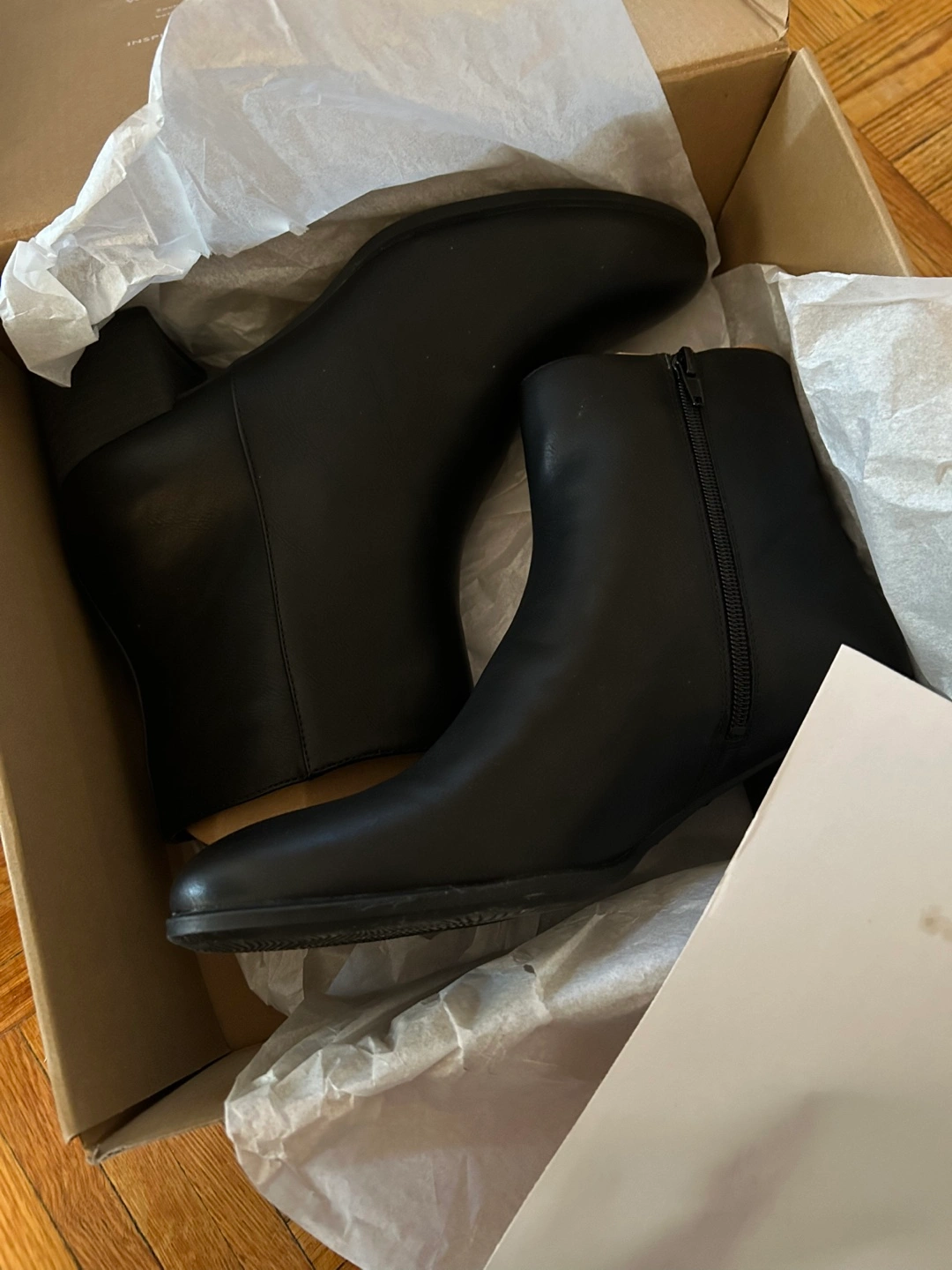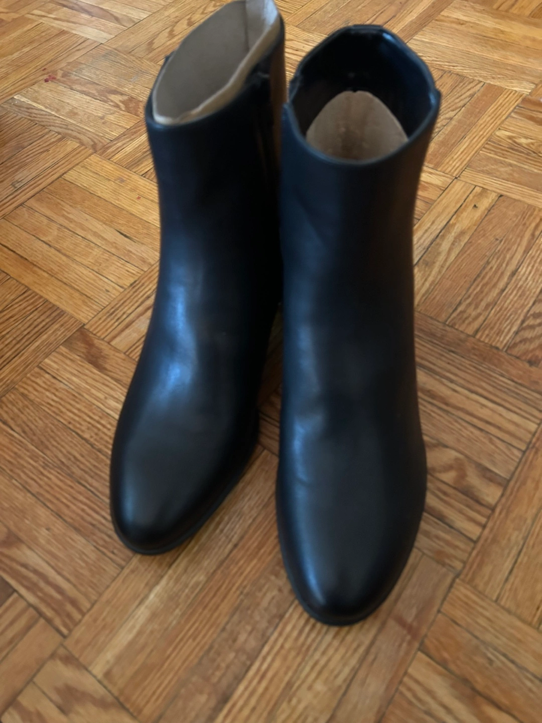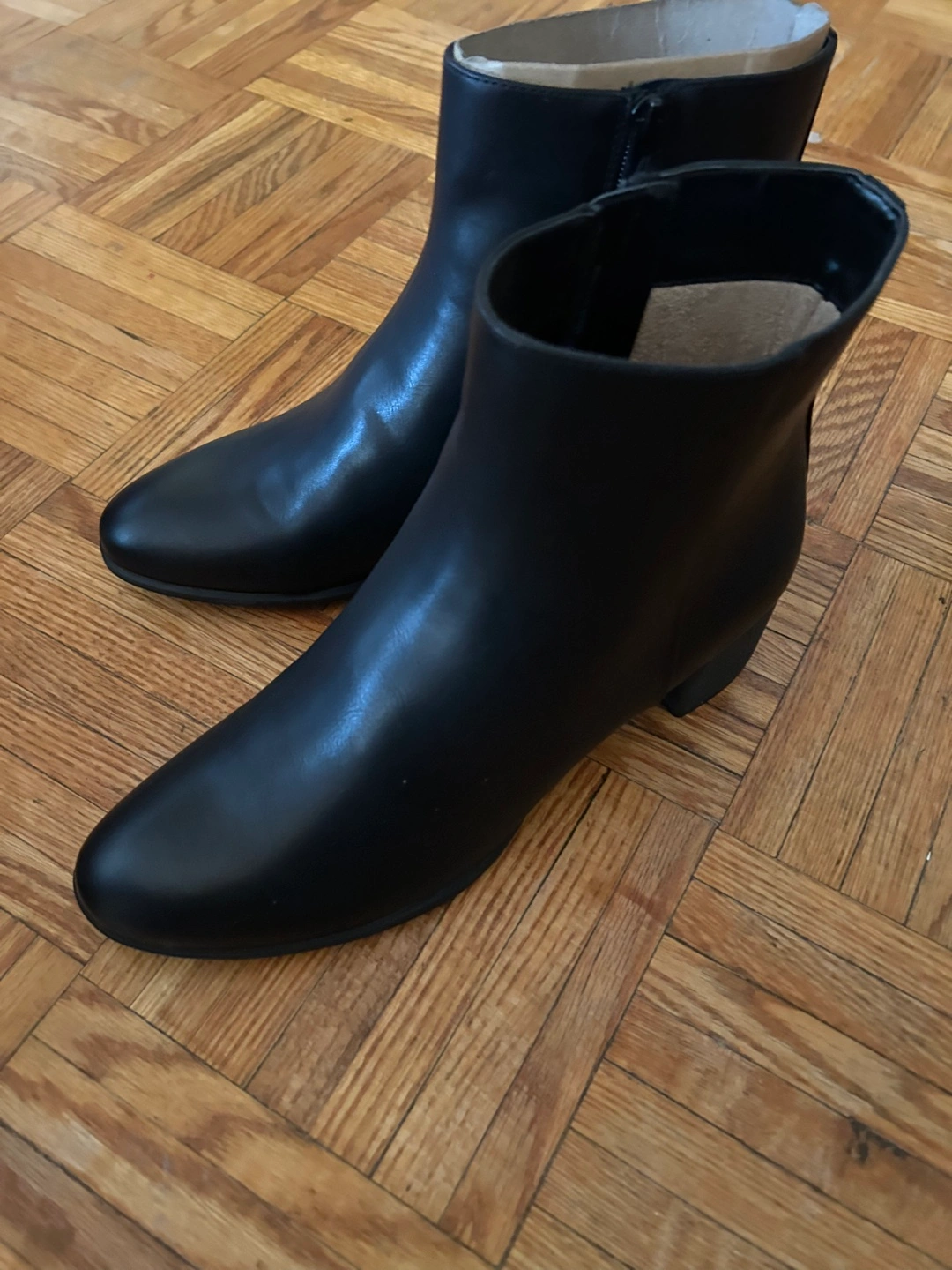 Brand new pair of black cute and comfortable ankle boots. Low block heel. Side zipper closure. Excellent condition. Comes in original box.