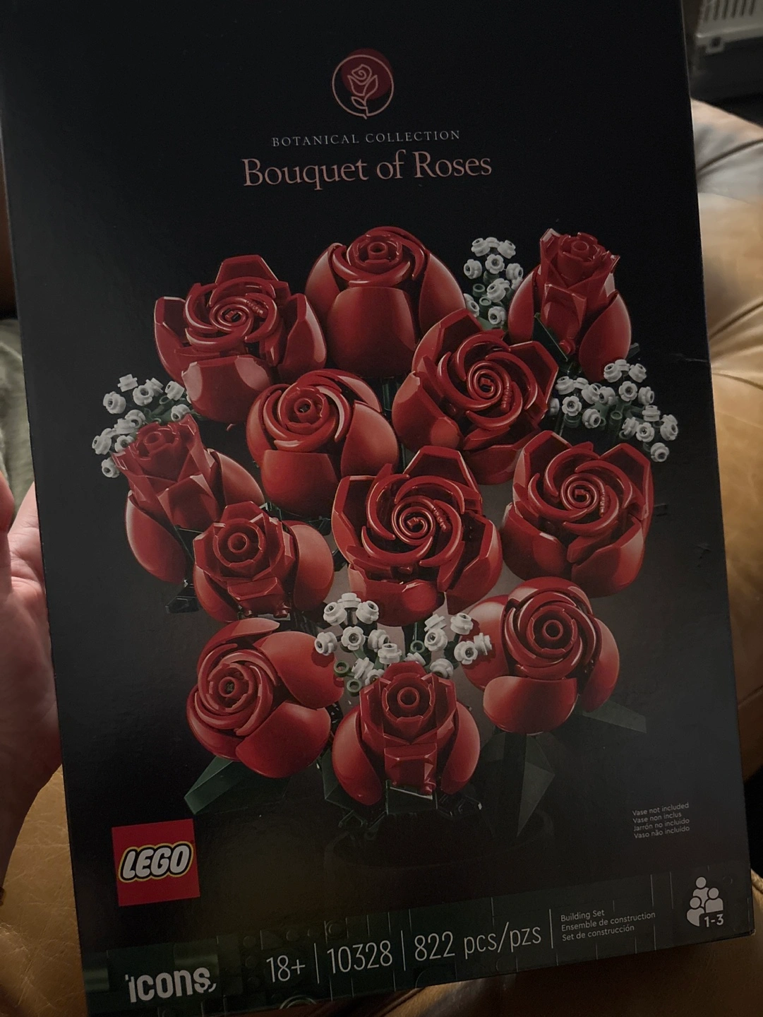 Brand New LEGO Icons Botanical Collection Bouquet of Roses set. 10328. 822 pieces. For ages 18+. Includes red roses and small white flowers. Vase not included.
