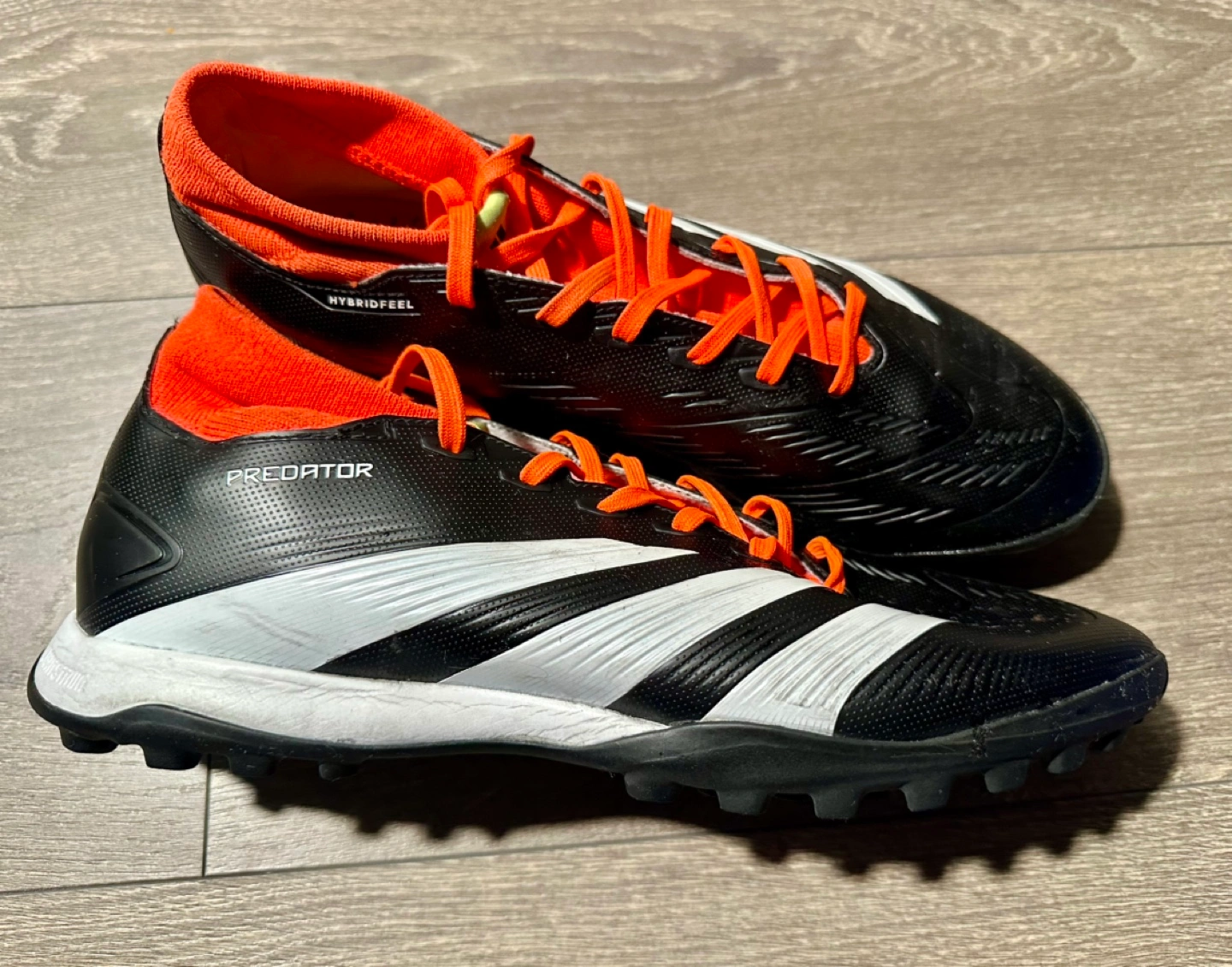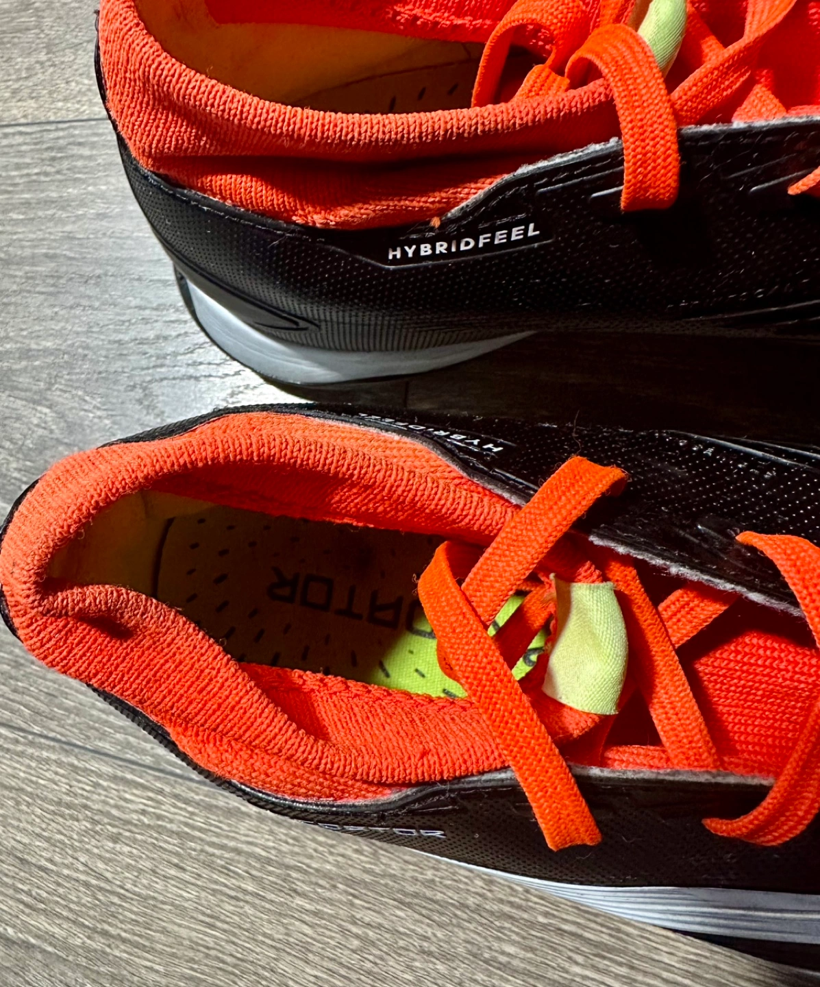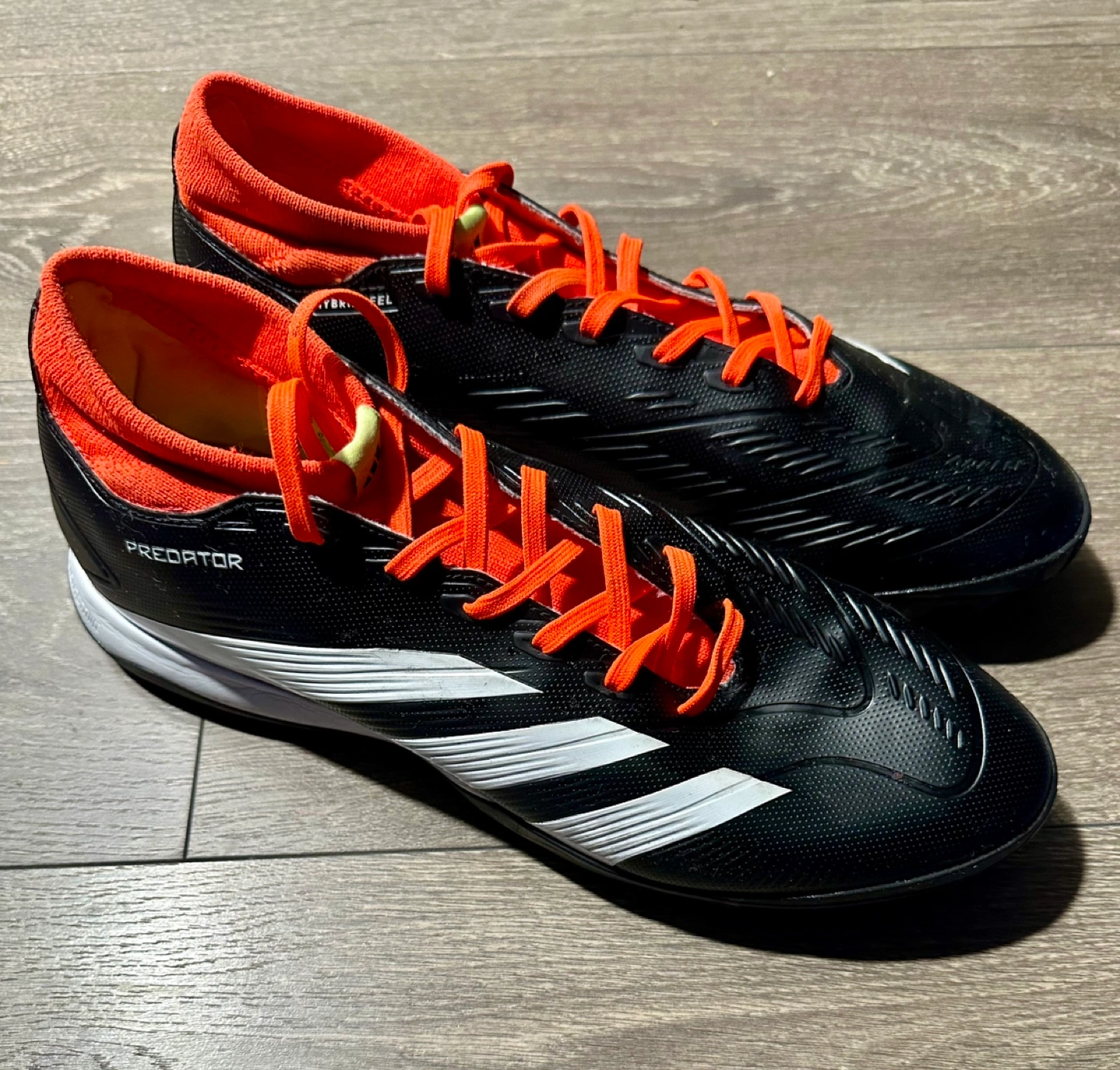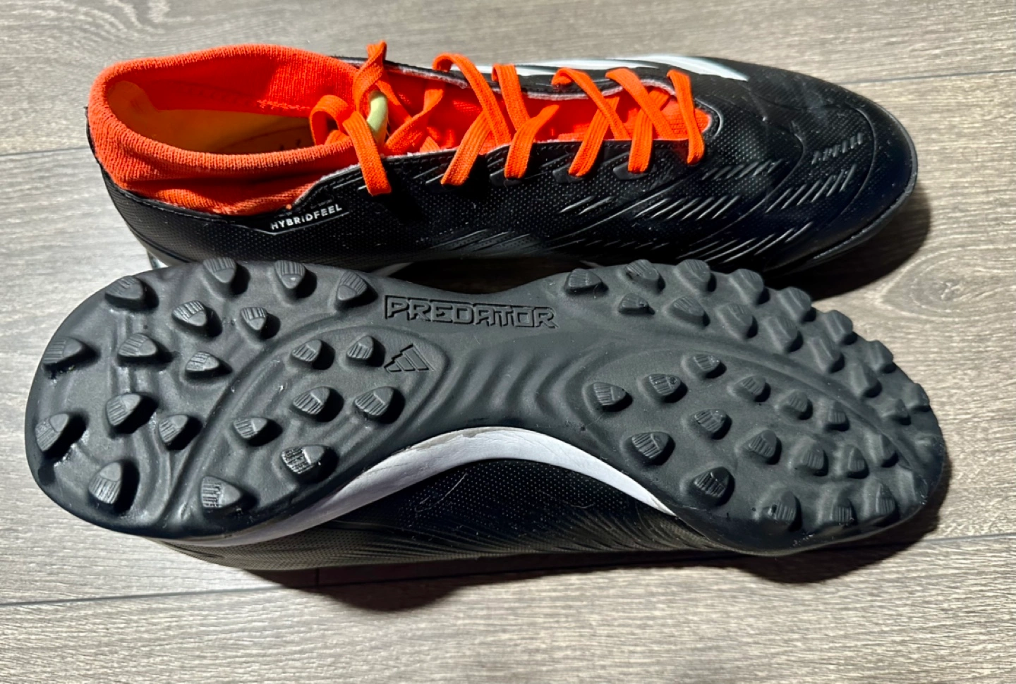 “Covered in a 3D texture and featuring grippy Strike scale fins on its medial side, the Hybrid feel upper is optimized for accurate shooting. Down below, a lug rubber outsole offers stability on artificial turf courts. This product features at least 20% recycled materials. By reusing materials that have already been created, we help to reduce waste and our reliance on finite resources and reduce the footprint of the products we make.”