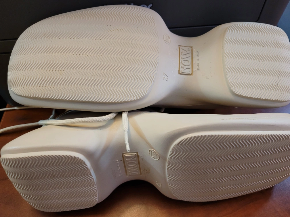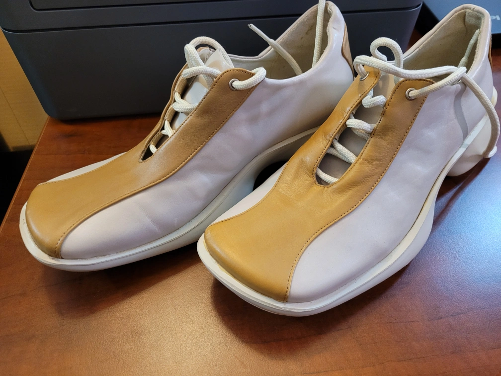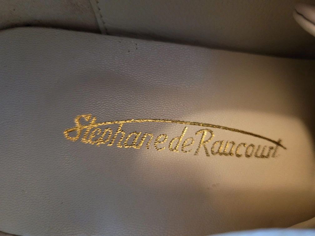 New Stephane de Raucourt women's platform shoes. Two-tone natural leather design, inside and out.