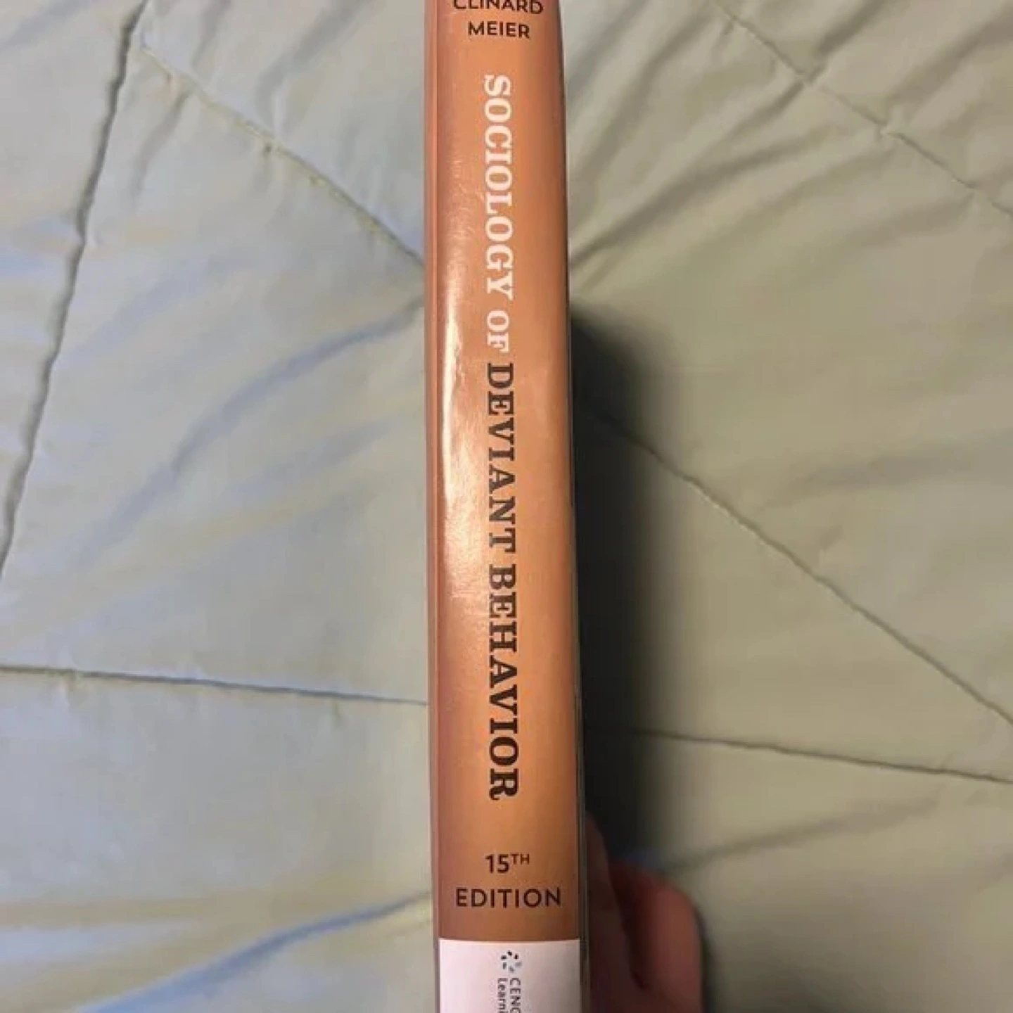 Used textbook. 15th edition. Shows some wear. Good condition. Authors: Clinard and Meier. Publisher: Cengage Learning.