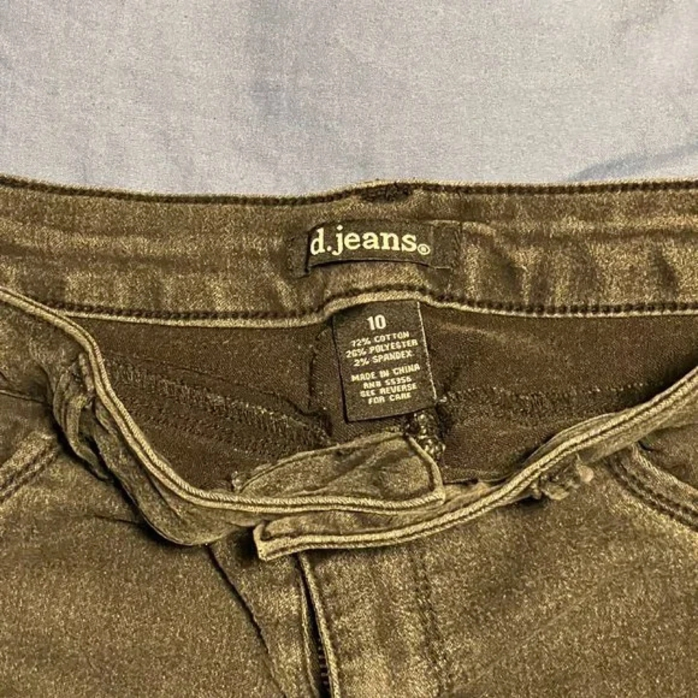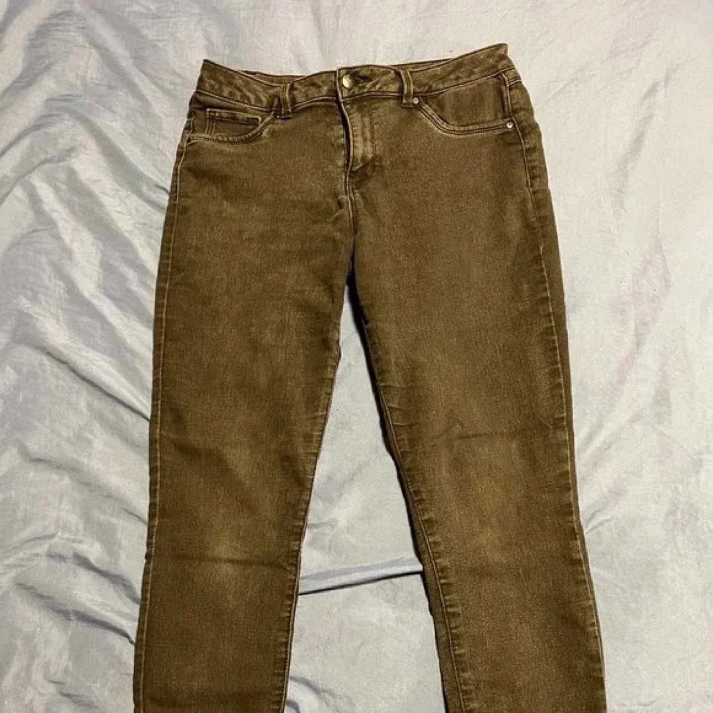 Dark brown skinny jeans. Size 10. 72% cotton, 25% polyester, 3% spandex. Made in China. Very good condition.
