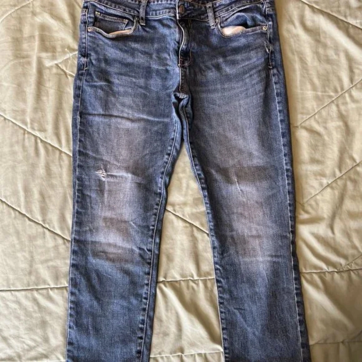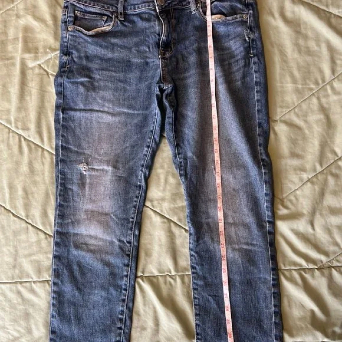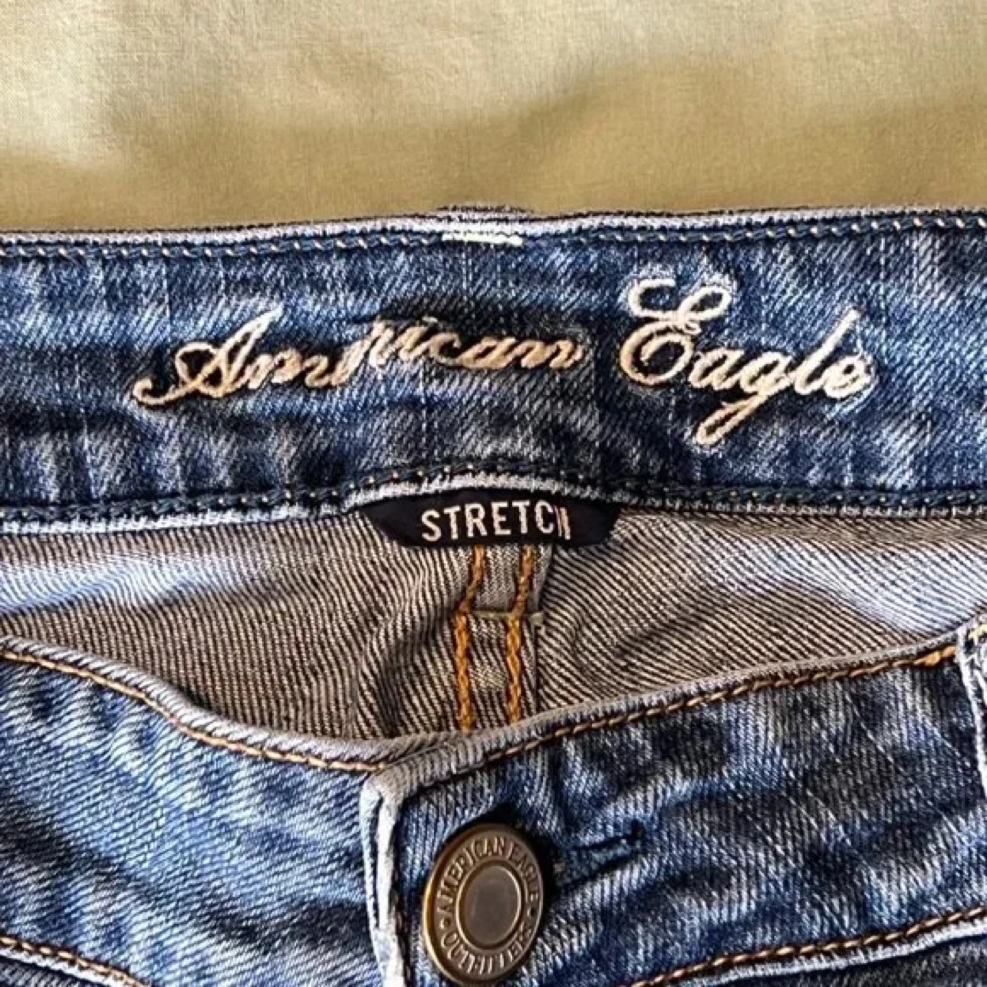 Women's American Eagle stretch jeans. Size 12. Light wash denim. Minor distressing.