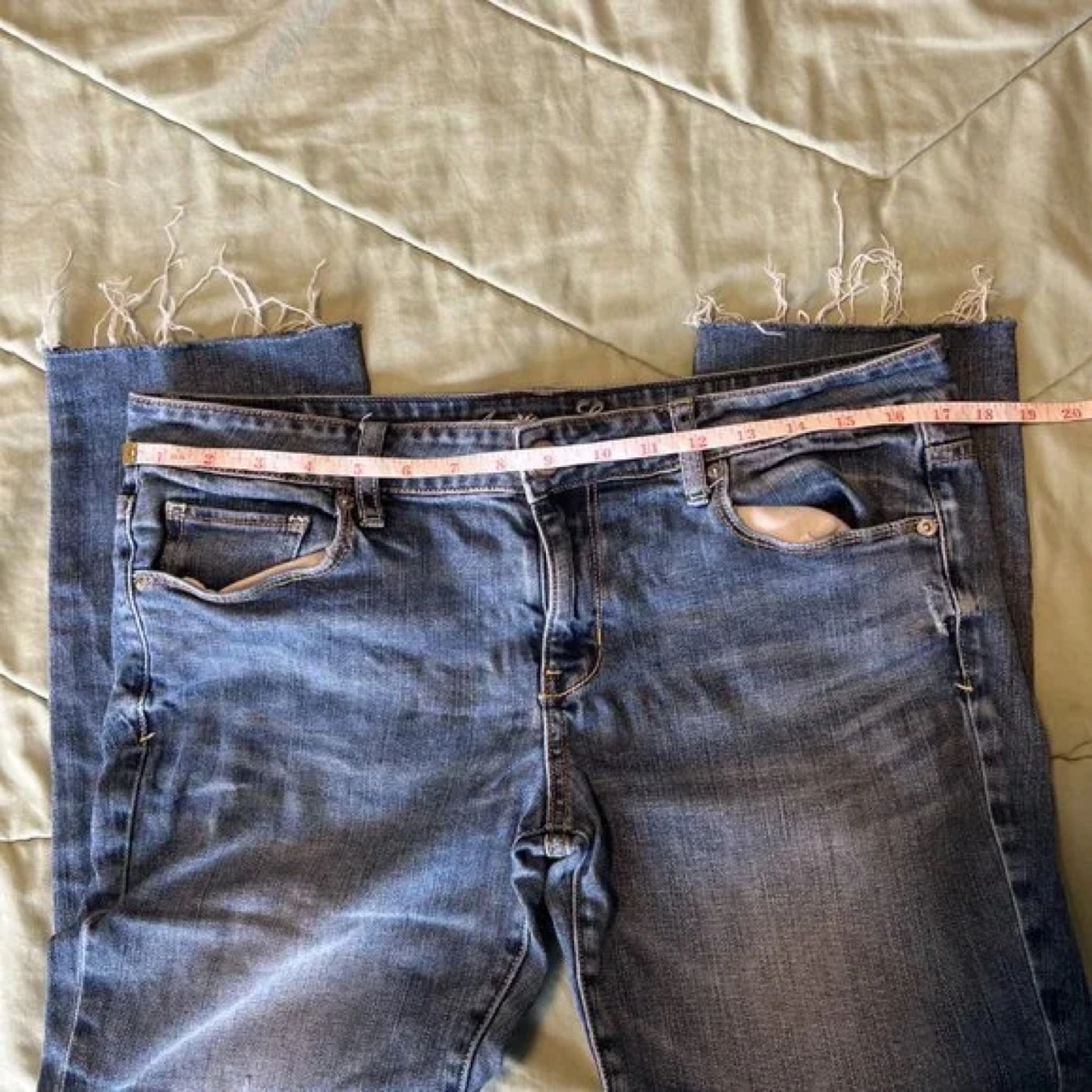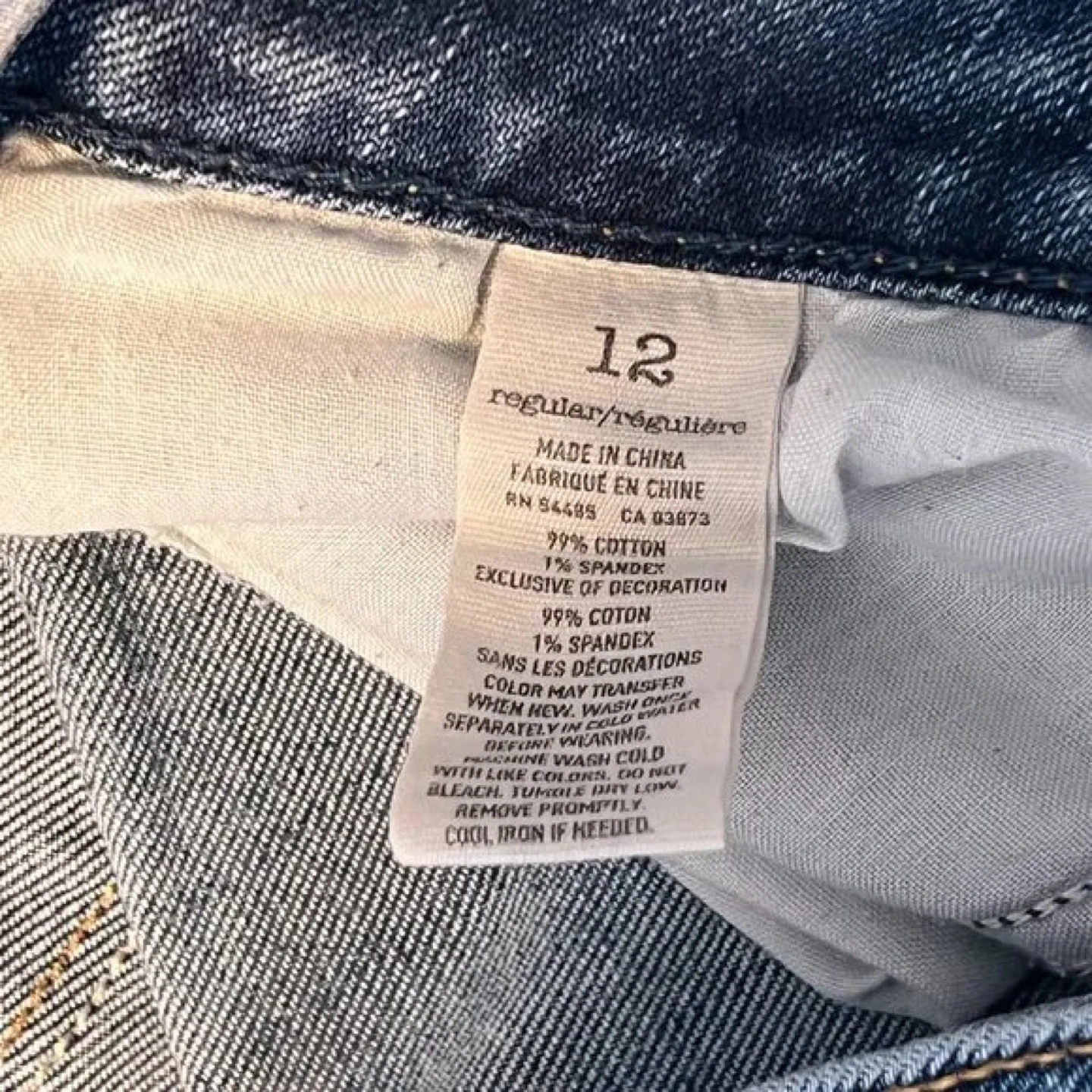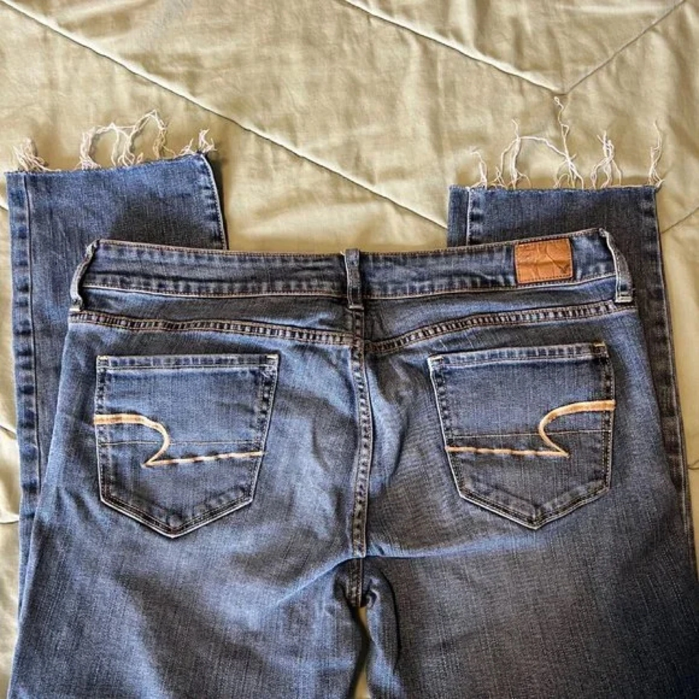 Women's American Eagle stretch jeans. Size 12. Light wash denim. Minor distressing.