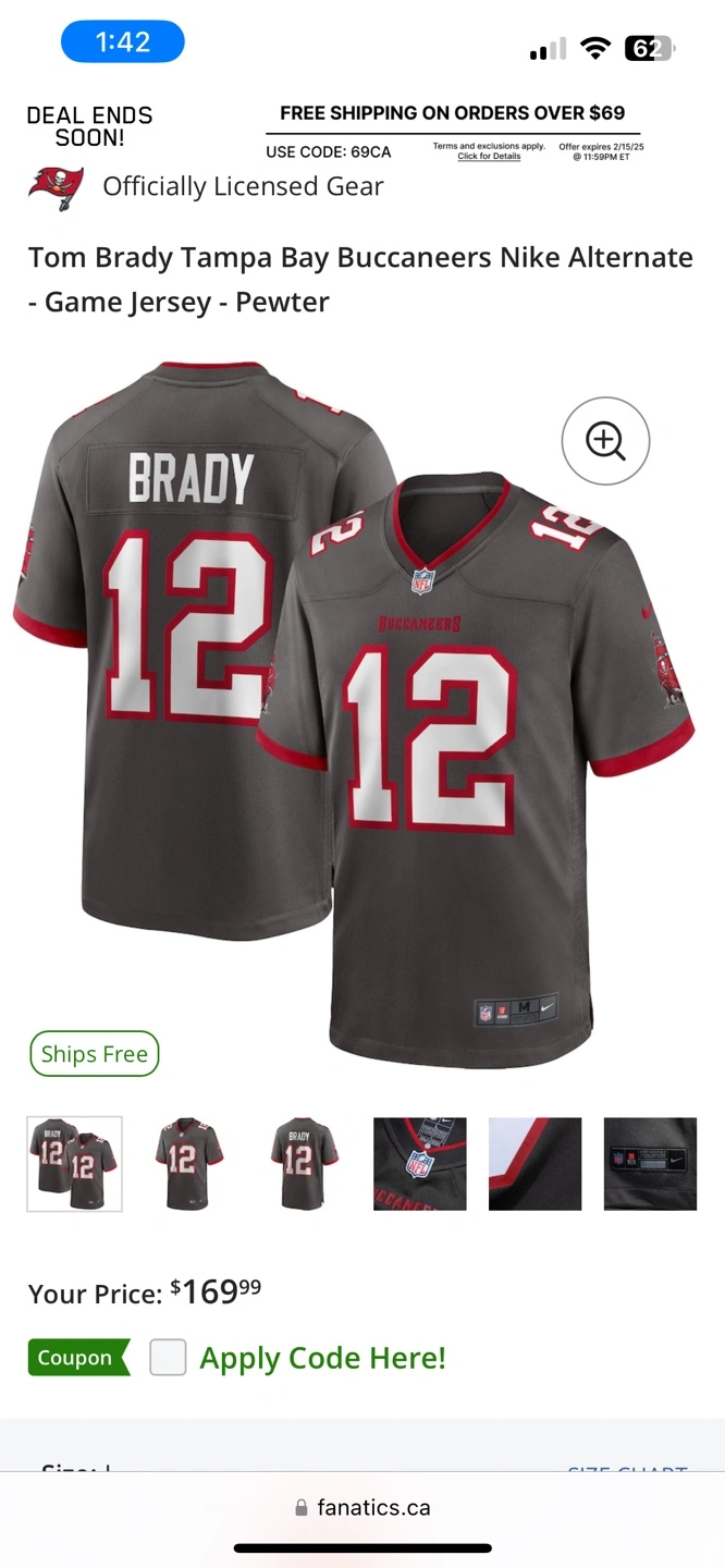 Tom Brady Tampa Bay Buccaneers Jersey - Size XL