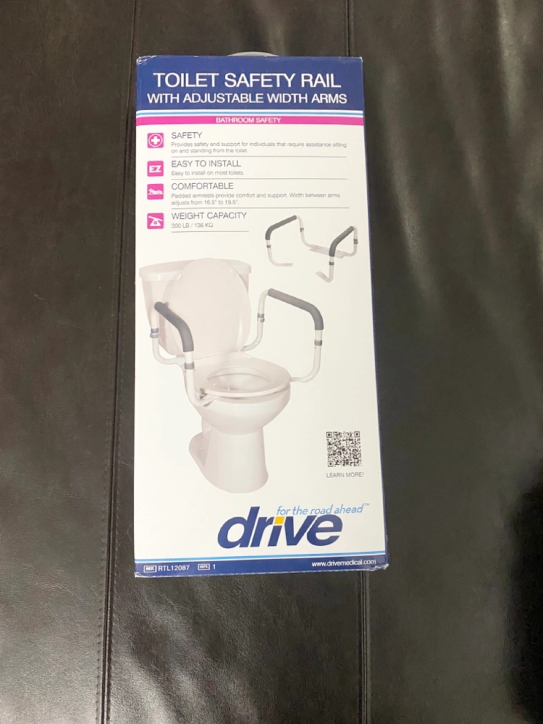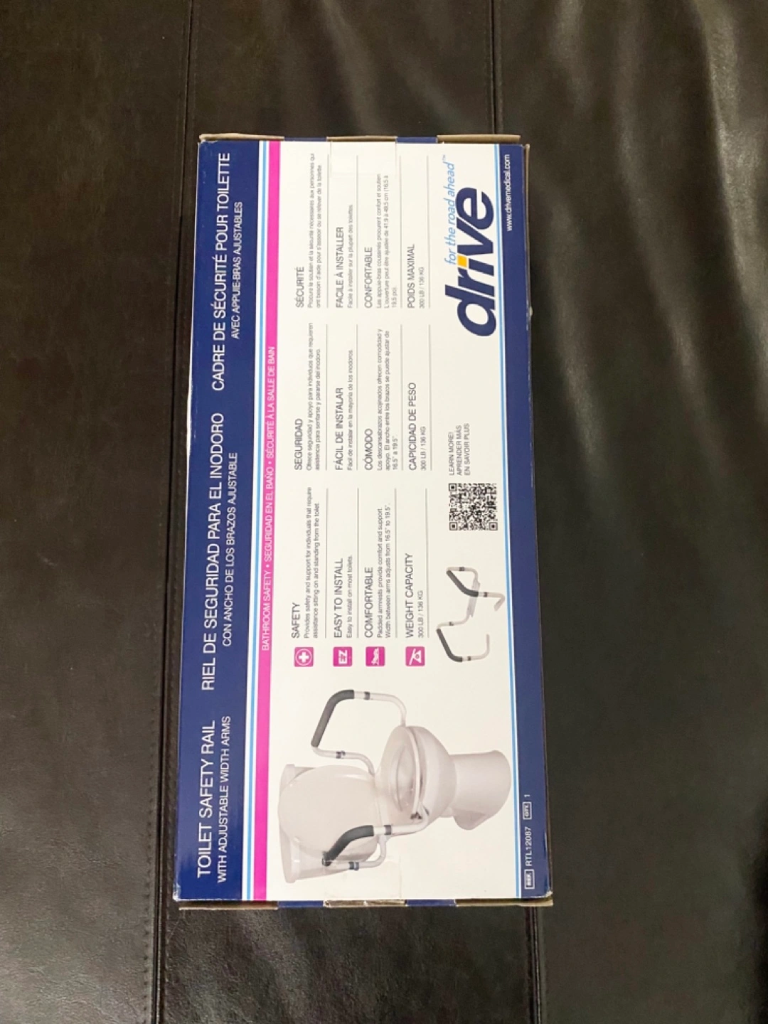 37New in box. Toilet safety rail. Adjustable width arms. Easy to install. Comfortable and supportive. 300 lb weight capacity.