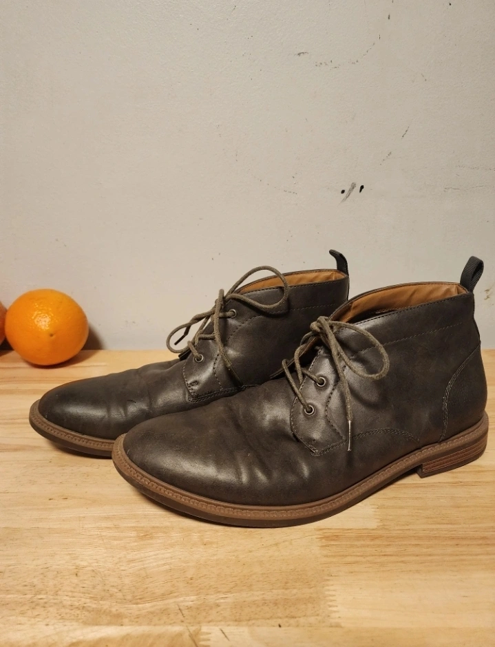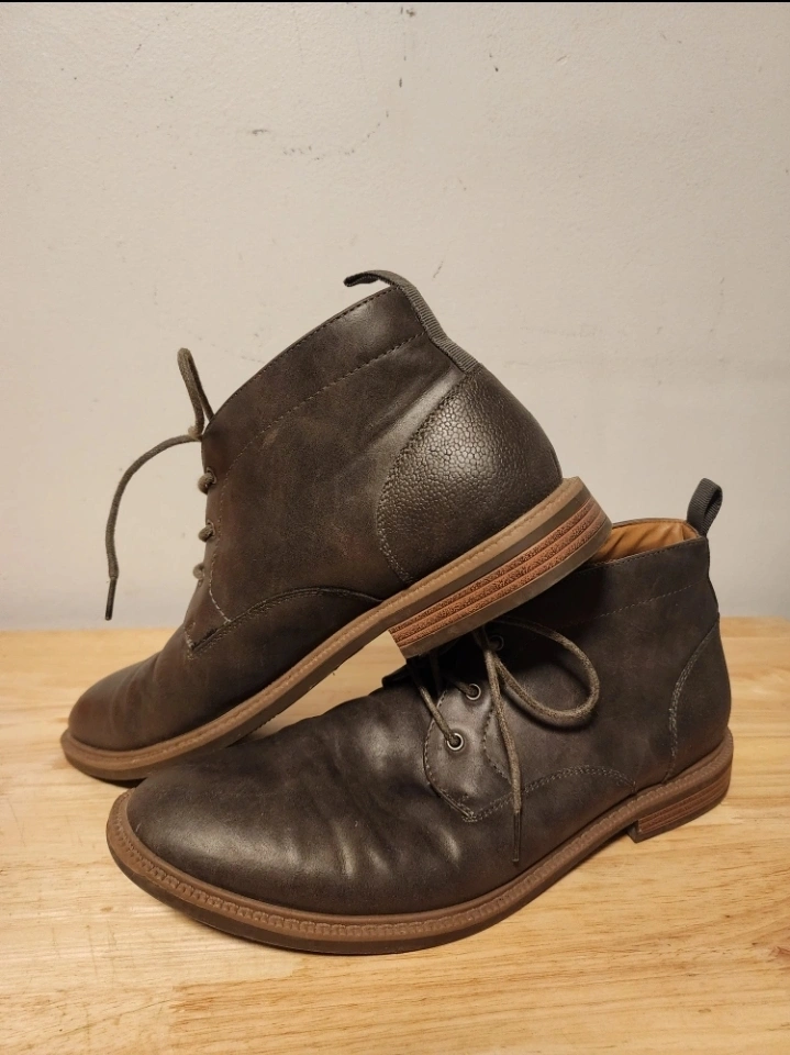 906Man shoes, brand George, good condition, used just a couple of times, pick up only at Davenport Road and Osler Street area. Feel free to check the other items I am selling. Pair of men's dark grey chukka boots. Lace-up closure. Brown rubber sole. Made in China. Size US 9, EUR 42, UK 8. Cash only.