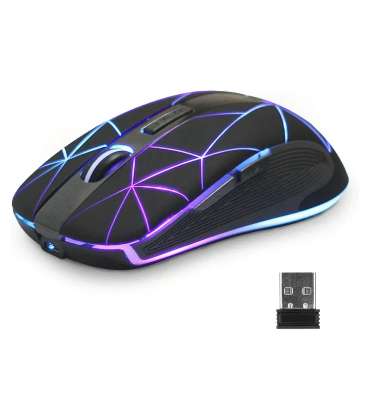 1000+RGB Wireless Rechargeable Mouse. Ergonomic design for all day comfort. 10m range. Self-storing nano receiver. Three selectable settings and three adjustable DPI mouse moving levels. Mousepad included. Taken out of the package and never used.