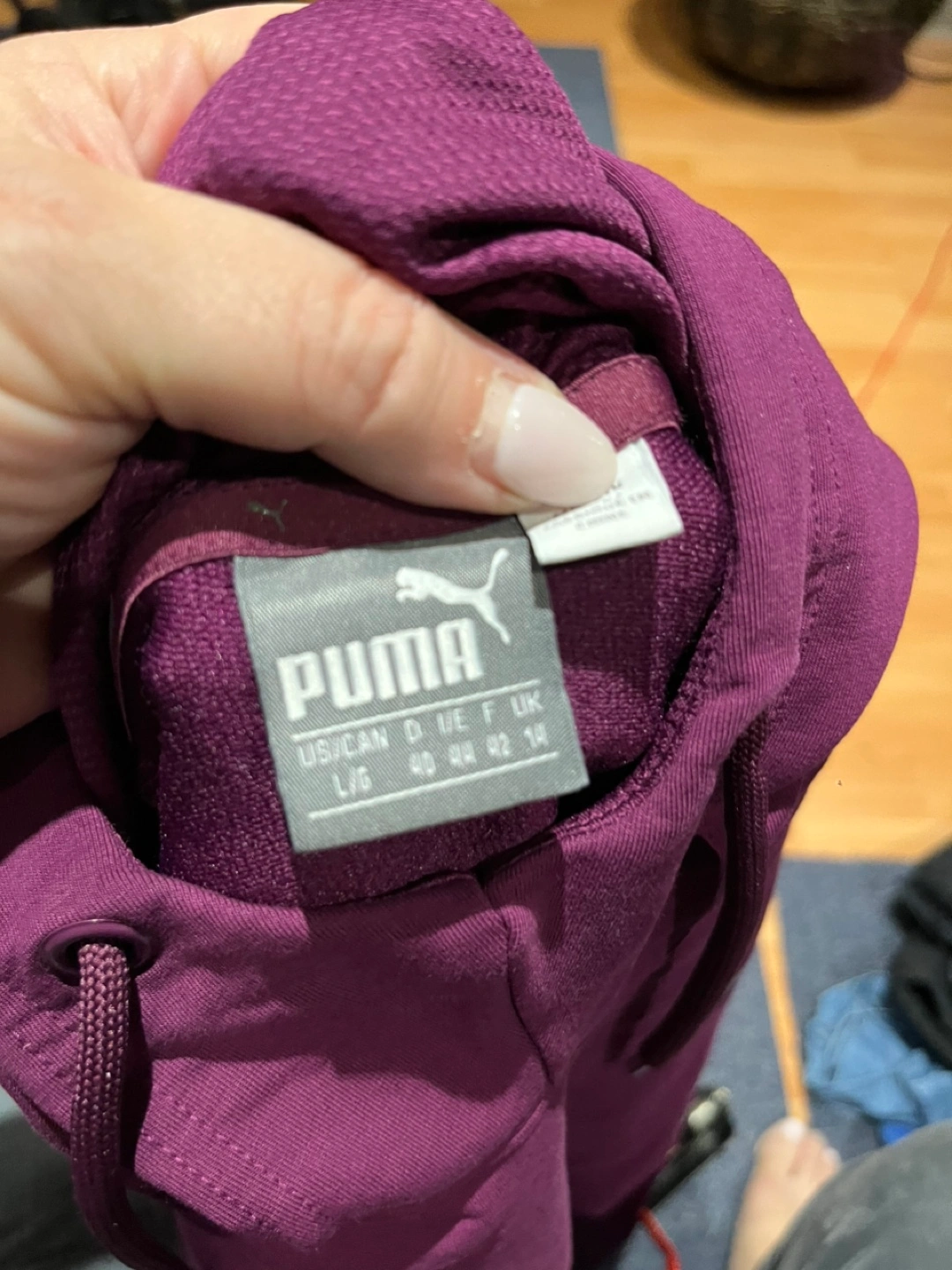 Women's purple Puma hoodie. Long sleeves. Drawstring hood. Size Large.