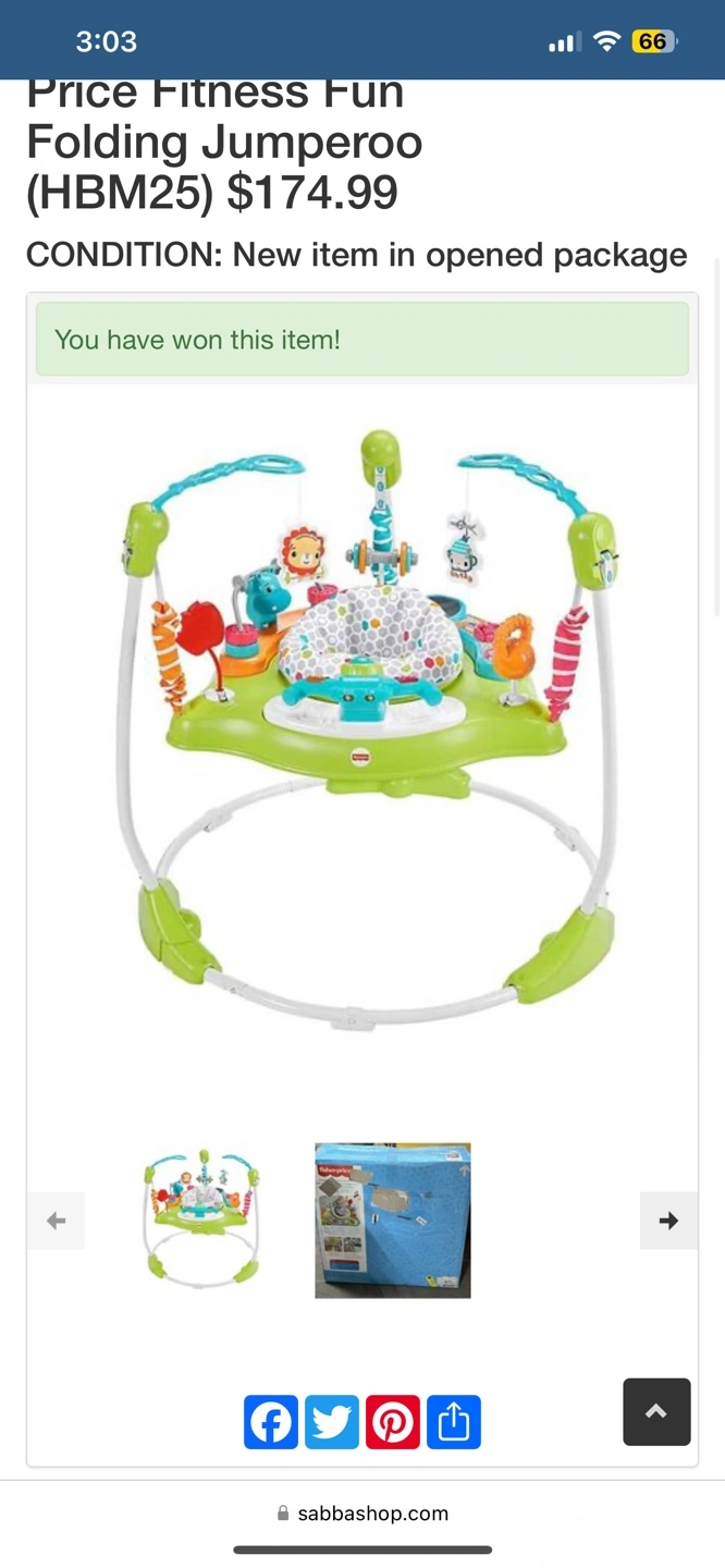 With the Fisher-Price Fitness Fun Folding Jumperoo activity center, your baby can bounce into gym-themed action! This activity center offers 360 degrees of workout-themed fun, . Use only for a child who is able to hold head upright unassisted and who is not able to walk or climb out of product. Gym-themed infant activity center with music, lights, and âworkoutâ toys ready for bouncy fun. 360 degrees of activities for baby to explore.Conveniently adjusts to 3 different heights as baby grows. âJumping playtime helps pump up baby's gross motor skills. Frame easily folds for travel and space-saving storage.