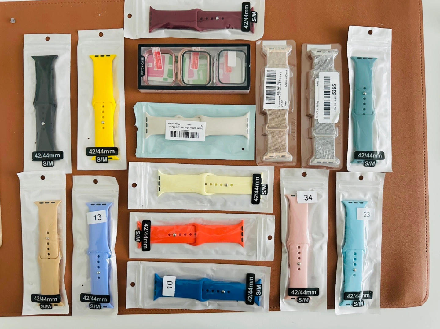 23Lot of assorted Apple Watch bands. Many colours and styles available. Sizes 42/44mm/45mm, small/medium. New, in packaging.