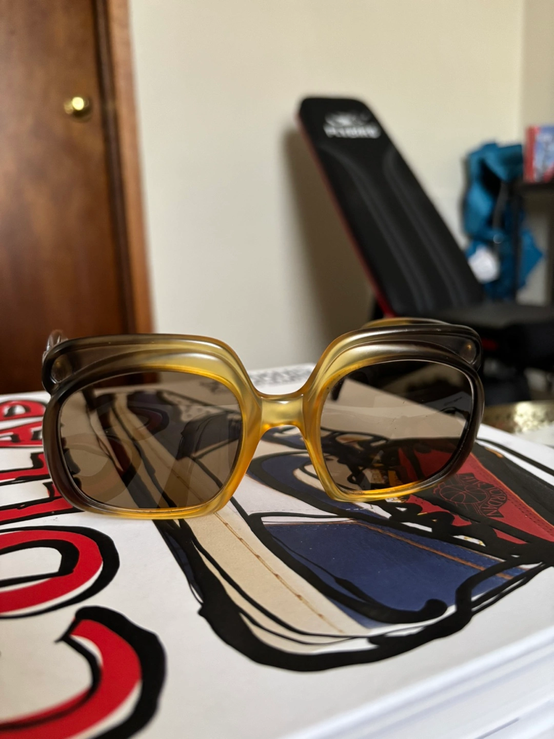Some minor wear to sunglasses, very faint scratches on lenses that can't be seen when worn 8/10 condition for age