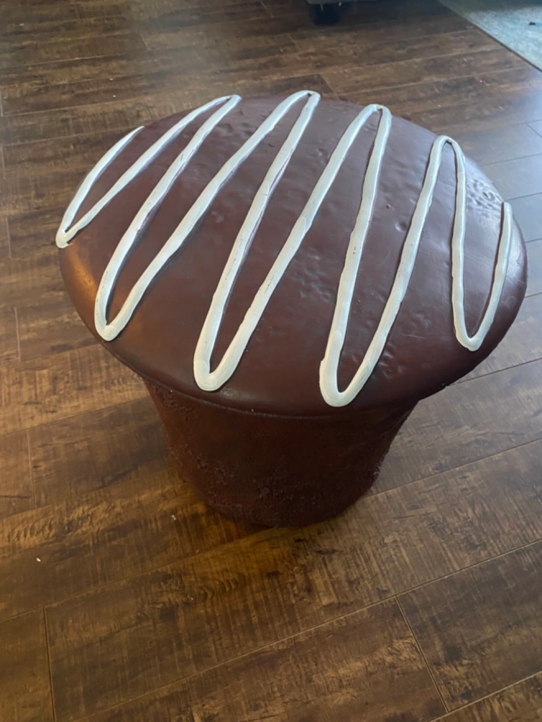 Unique chocolate cupcake-shaped stool. Great conversation piece. Looks like a giant cupcake. Perfect for a bakery or whimsical home.