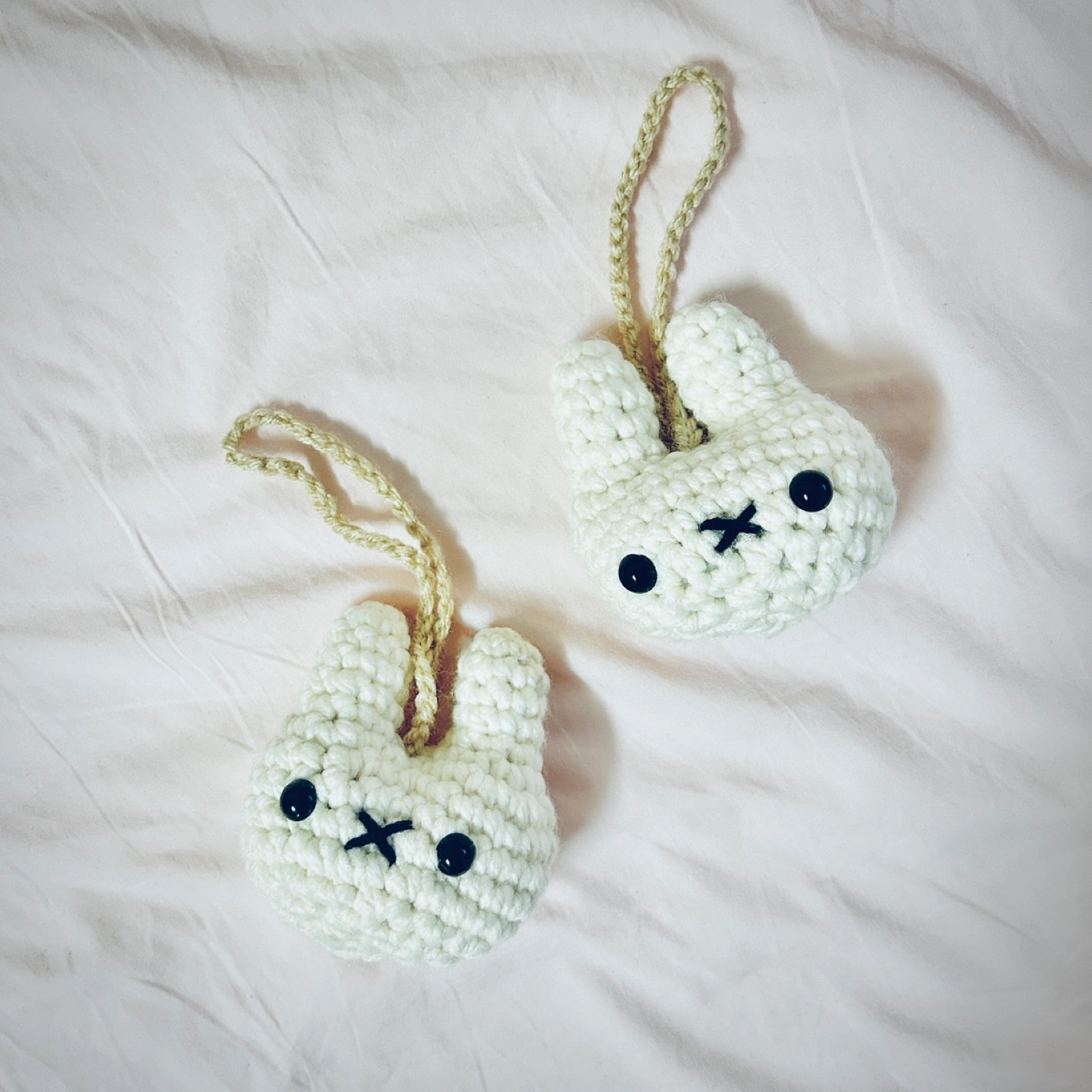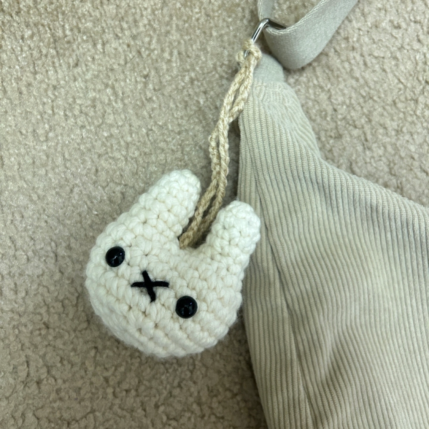 Handmade crochet Miffy bunny keychain. Perfect bag charm. Cream coloured yarn. Small and cute. Makes a great gift.