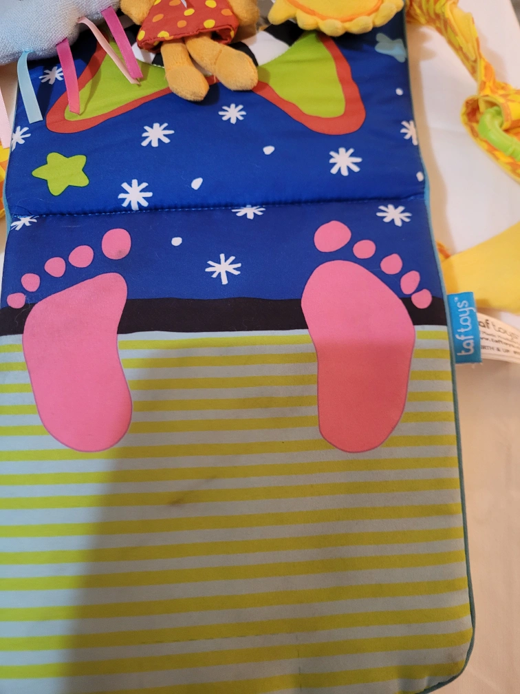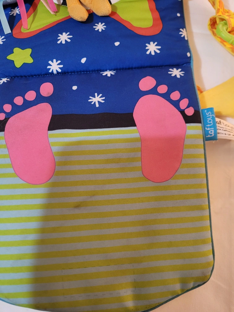 Slight stains on activity set (as seen in pics)- little toes on mat light up when pressed!