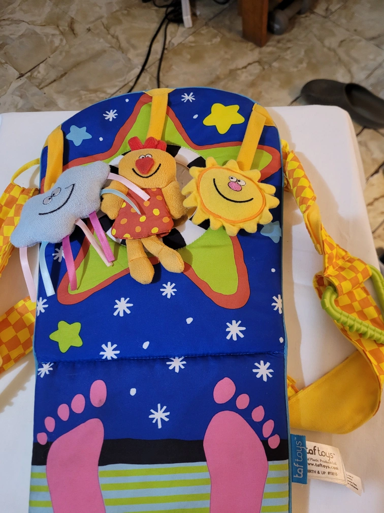 Adorable baby activity gym. Features bright colors and fun characters. Includes hanging toys. Perfect for tummy time or playtime.