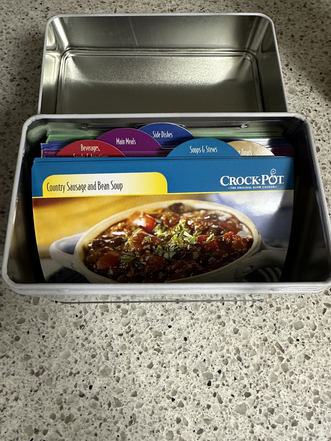 Crock pot with the recipe card collection