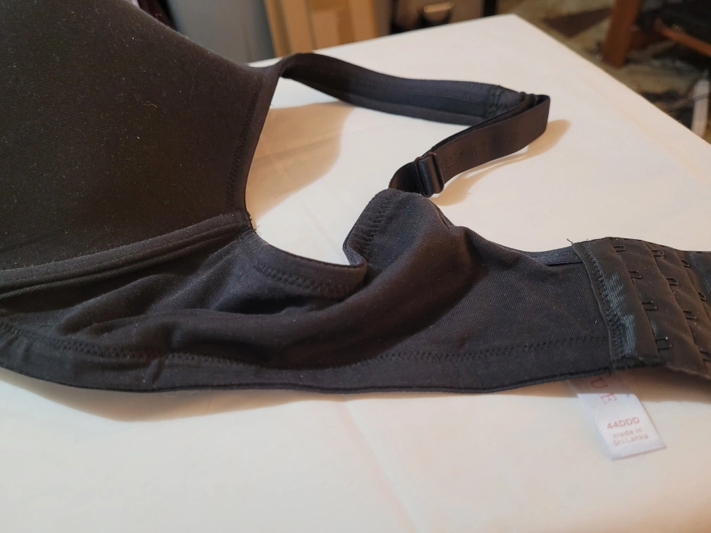 Black Cacique underwire bra- full coverage, lightly padded. Size 44DDD. Excellent support. Soft, comfortable material. Adjustable straps. Hook and eye closure.