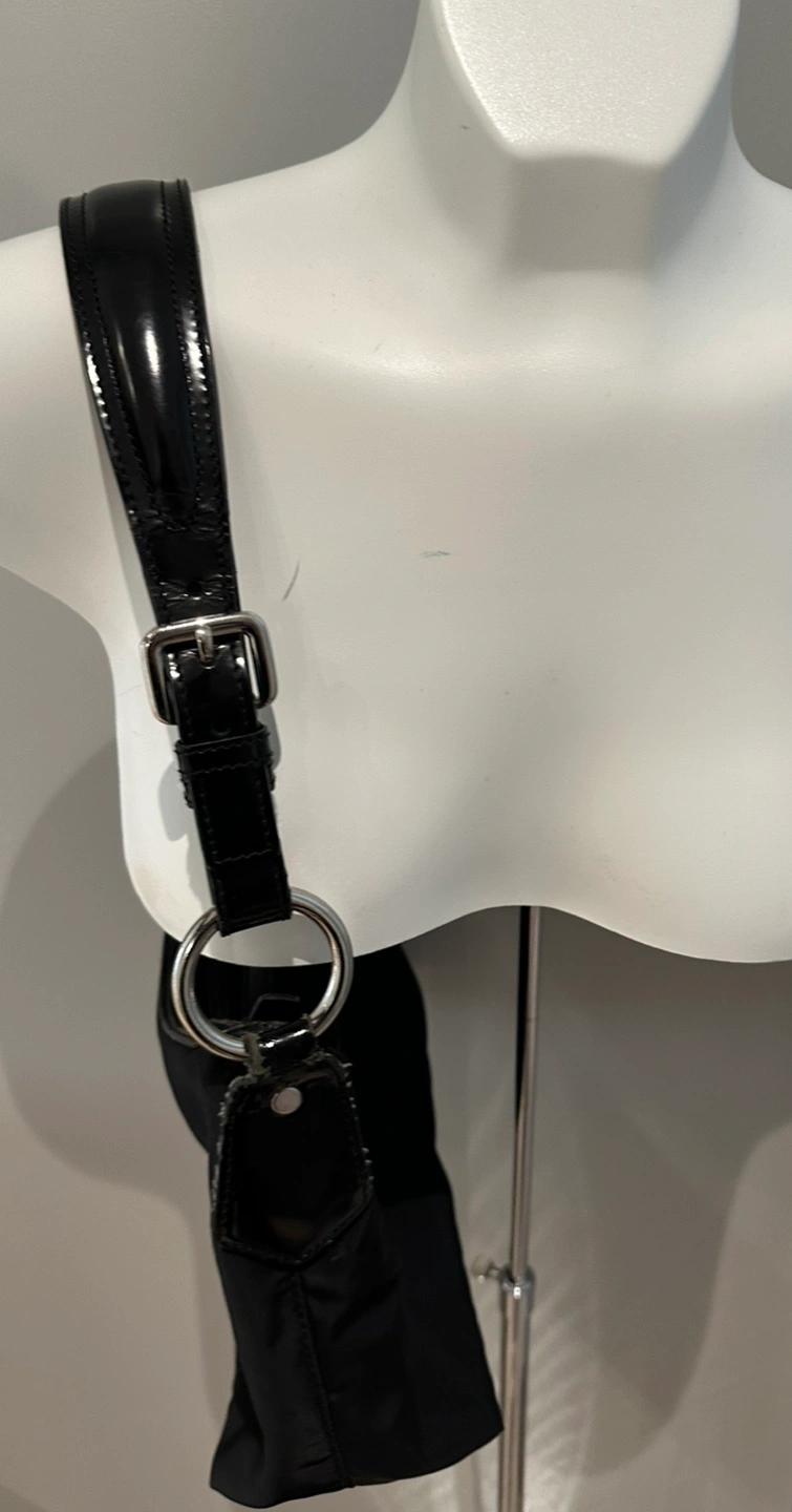 Authentic Prada Black Nylon leather detailed Shoulder Bag