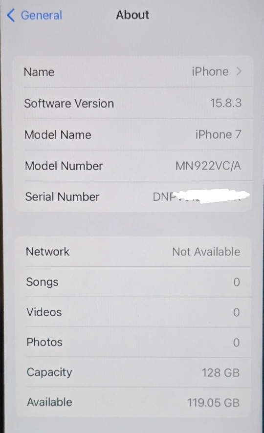 Used iPhone 7 in like new condition. 128 GB storage. Black colour. Charging cable not provided.