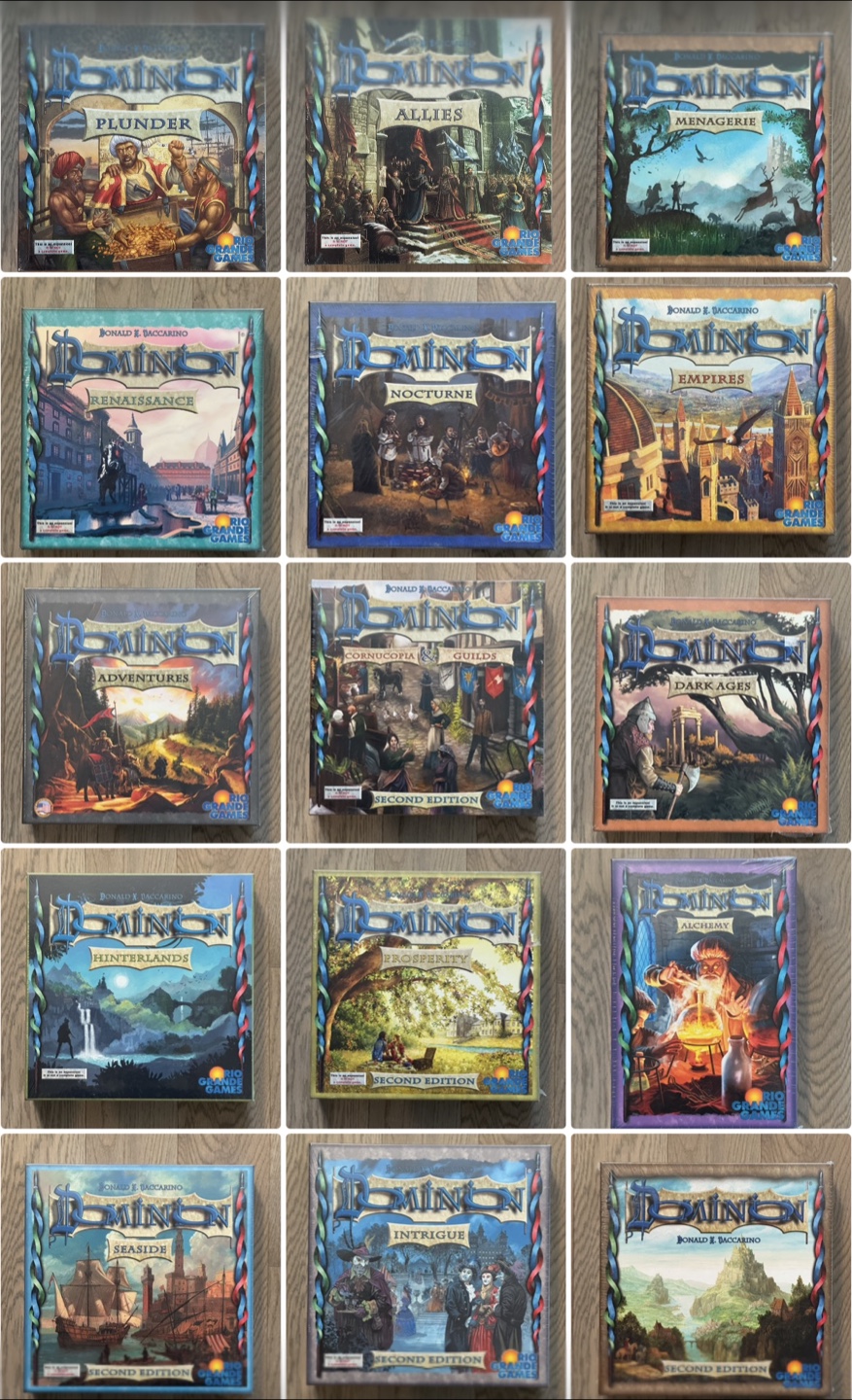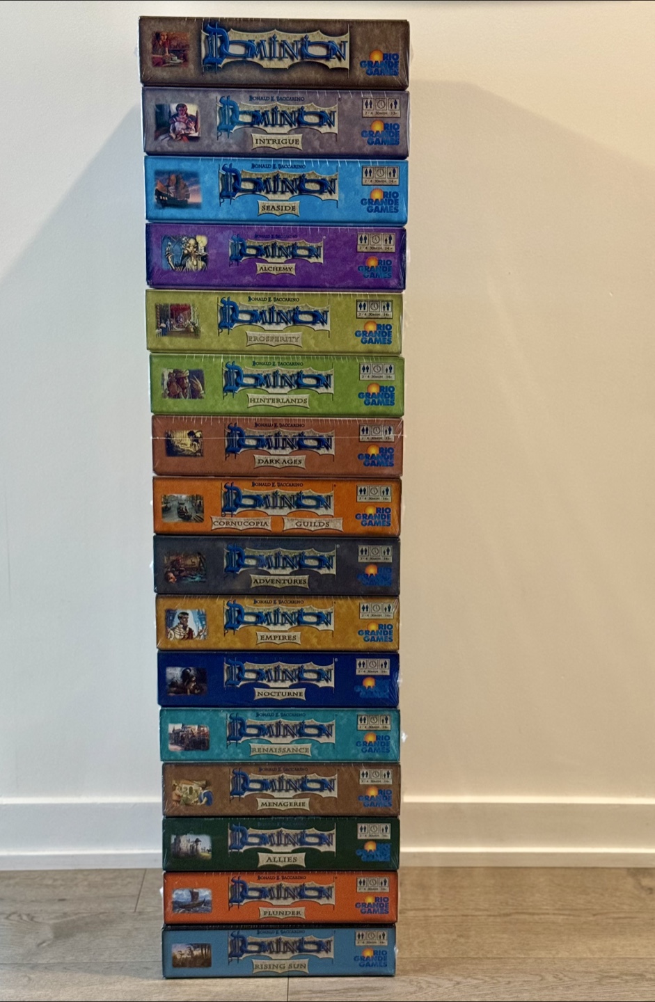 Brand new Dominion board game (2nd Edition) + all 15 expansions, also all brand new and sealed.
