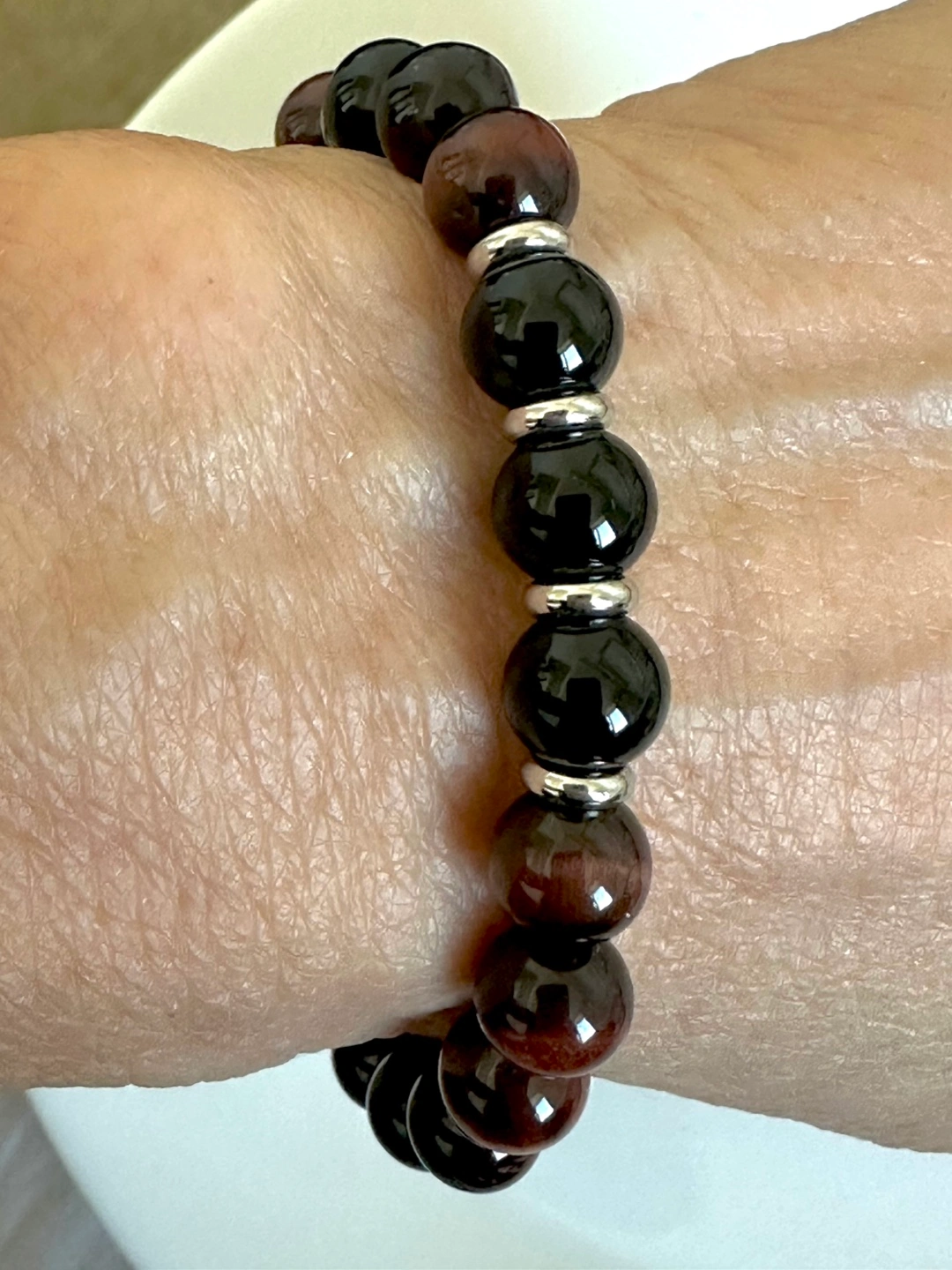 Red Tiger Eye and Black Onyx Beaded Bracelet