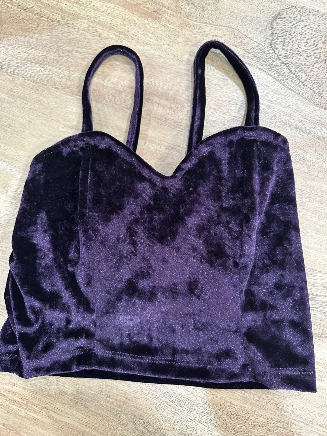 Brand new Dark purple velvet crop top. Features thin shoulder straps and a sweetheart neckline. Soft material, cropped fit.