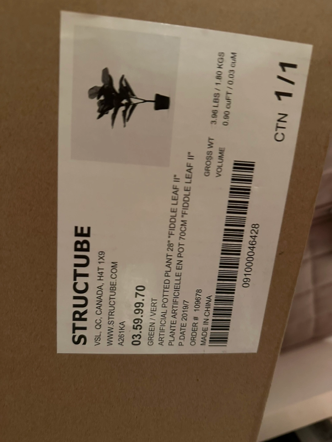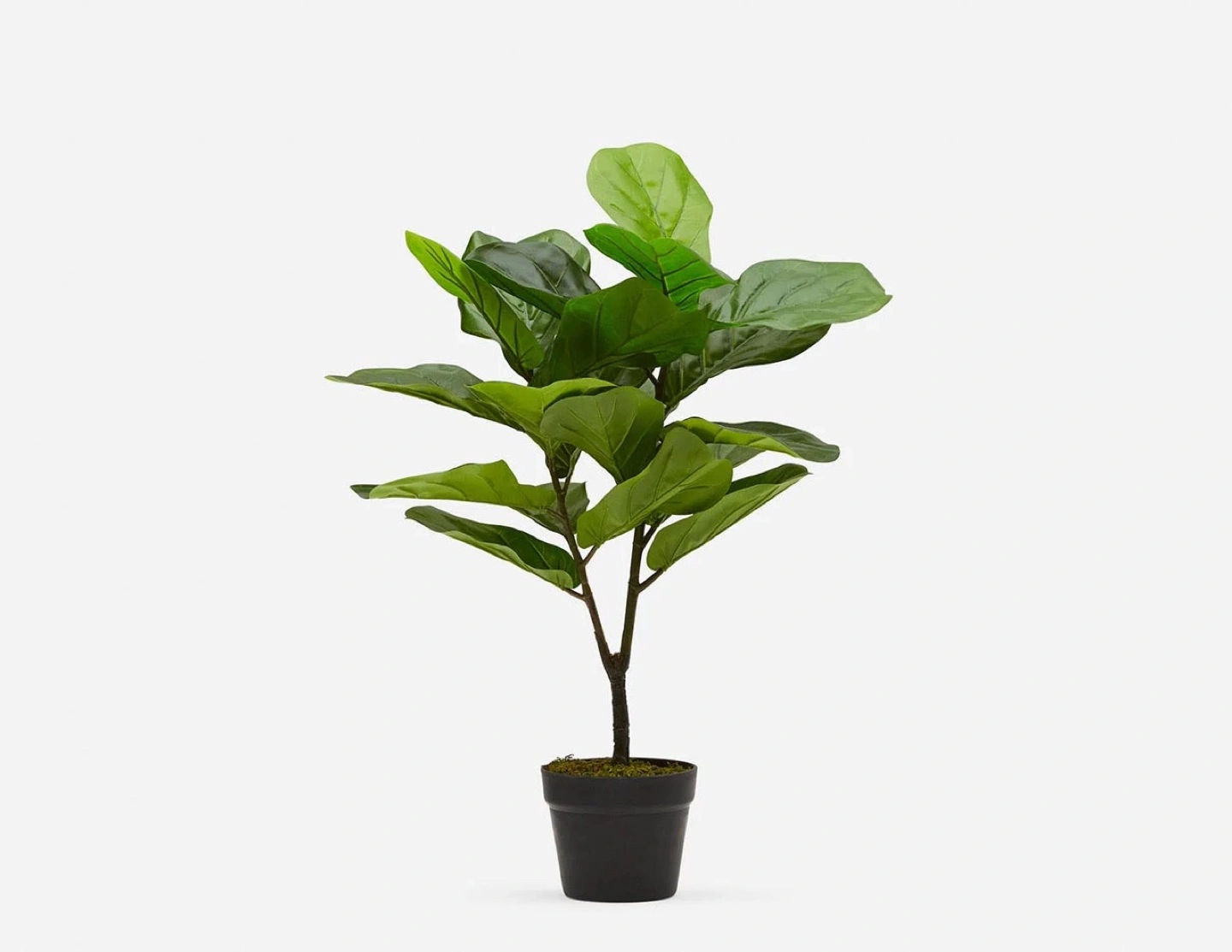 123Artificial fiddle leaf plant. Green leaves. Planted in a black pot. 28 inches tall.