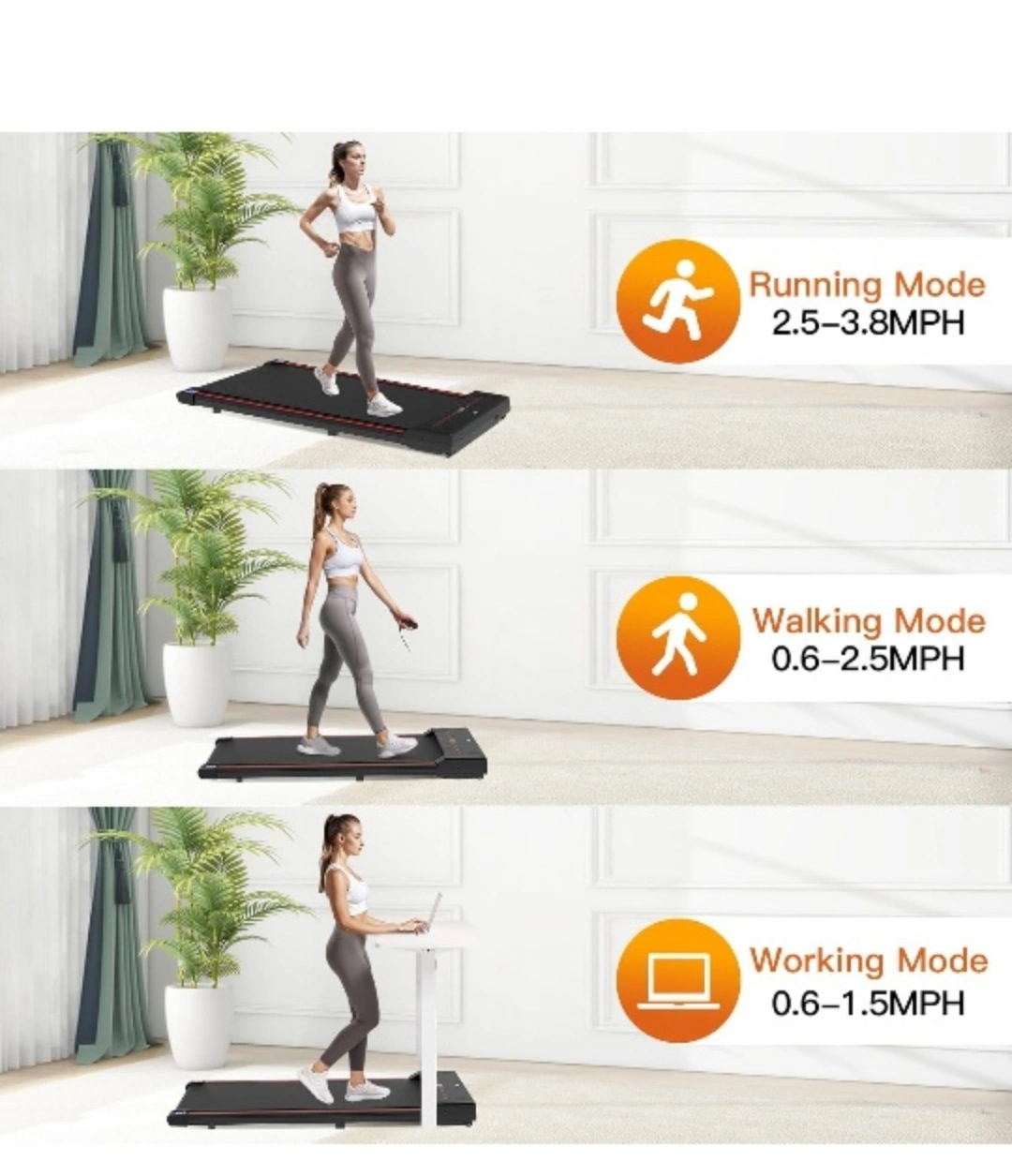 Under-desk walking treadmill. Portable and space-saving design. Multiple speed settings for walking, running, and working. Great for home workouts. New in box, never used.