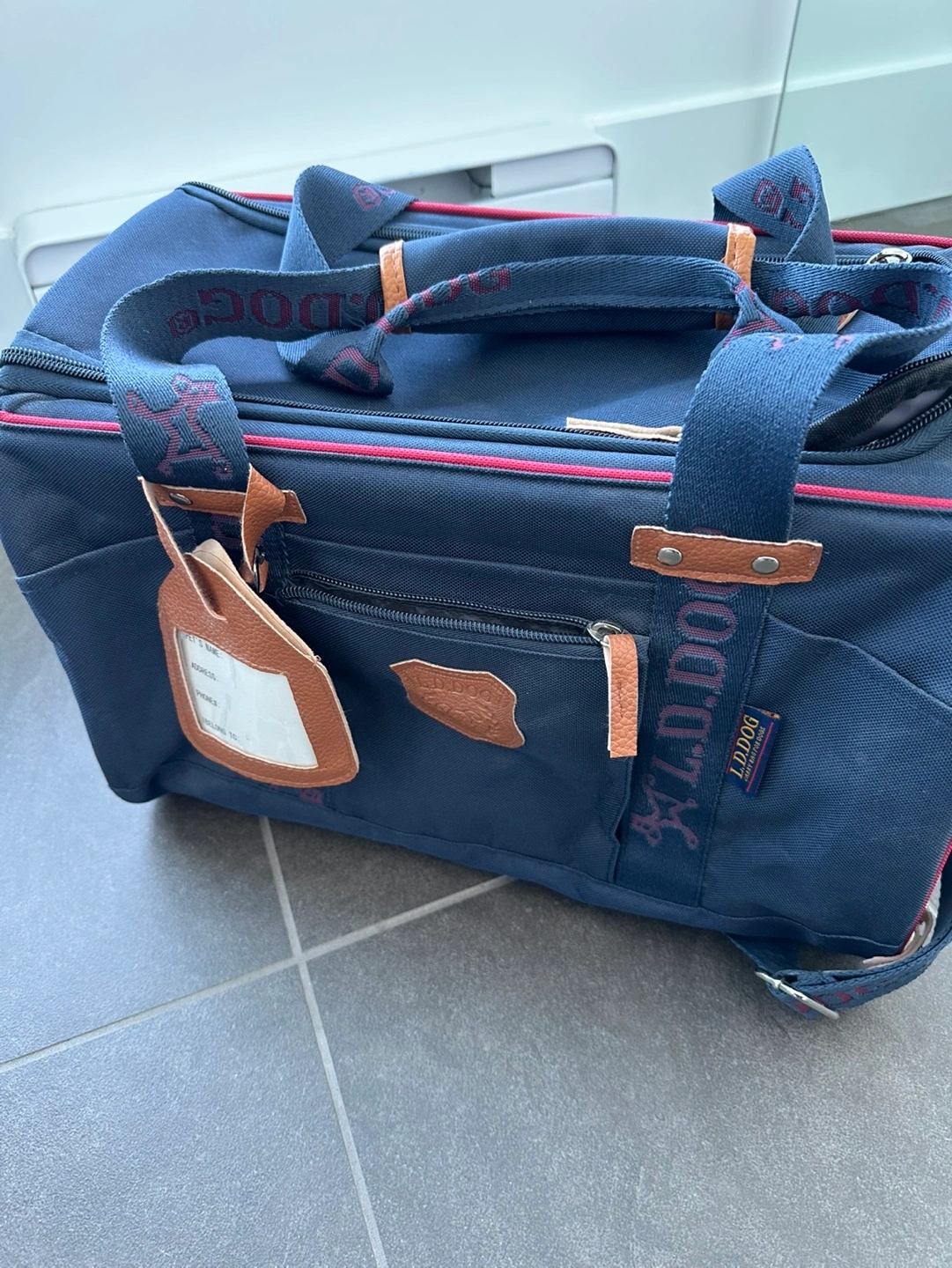 Includes a luggage tag. Great for travelling with your furry friend.