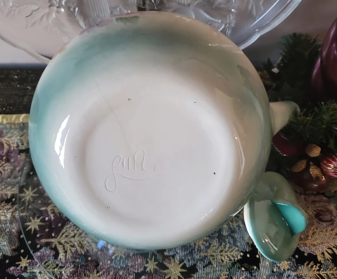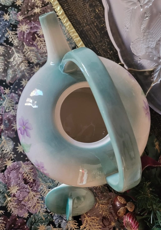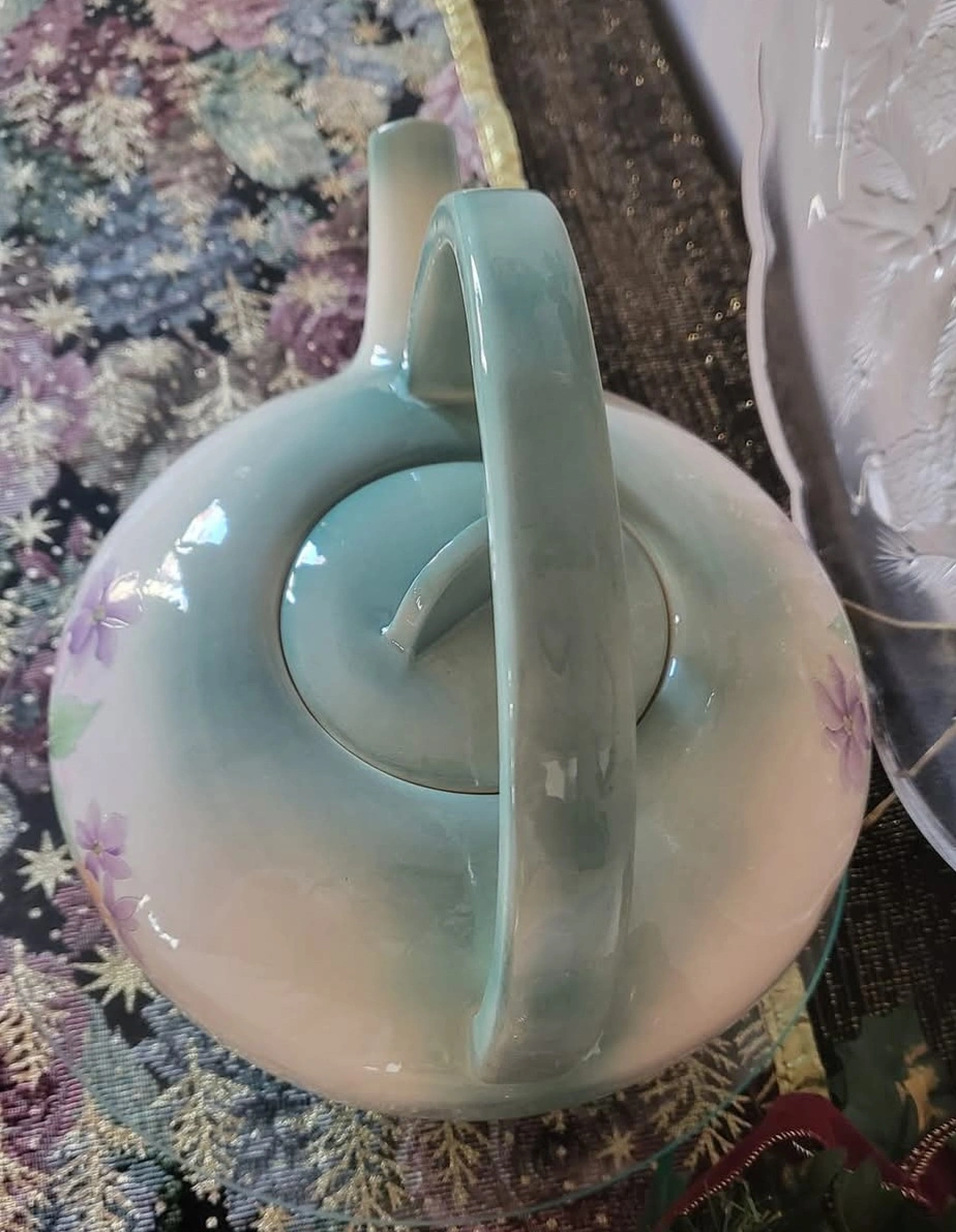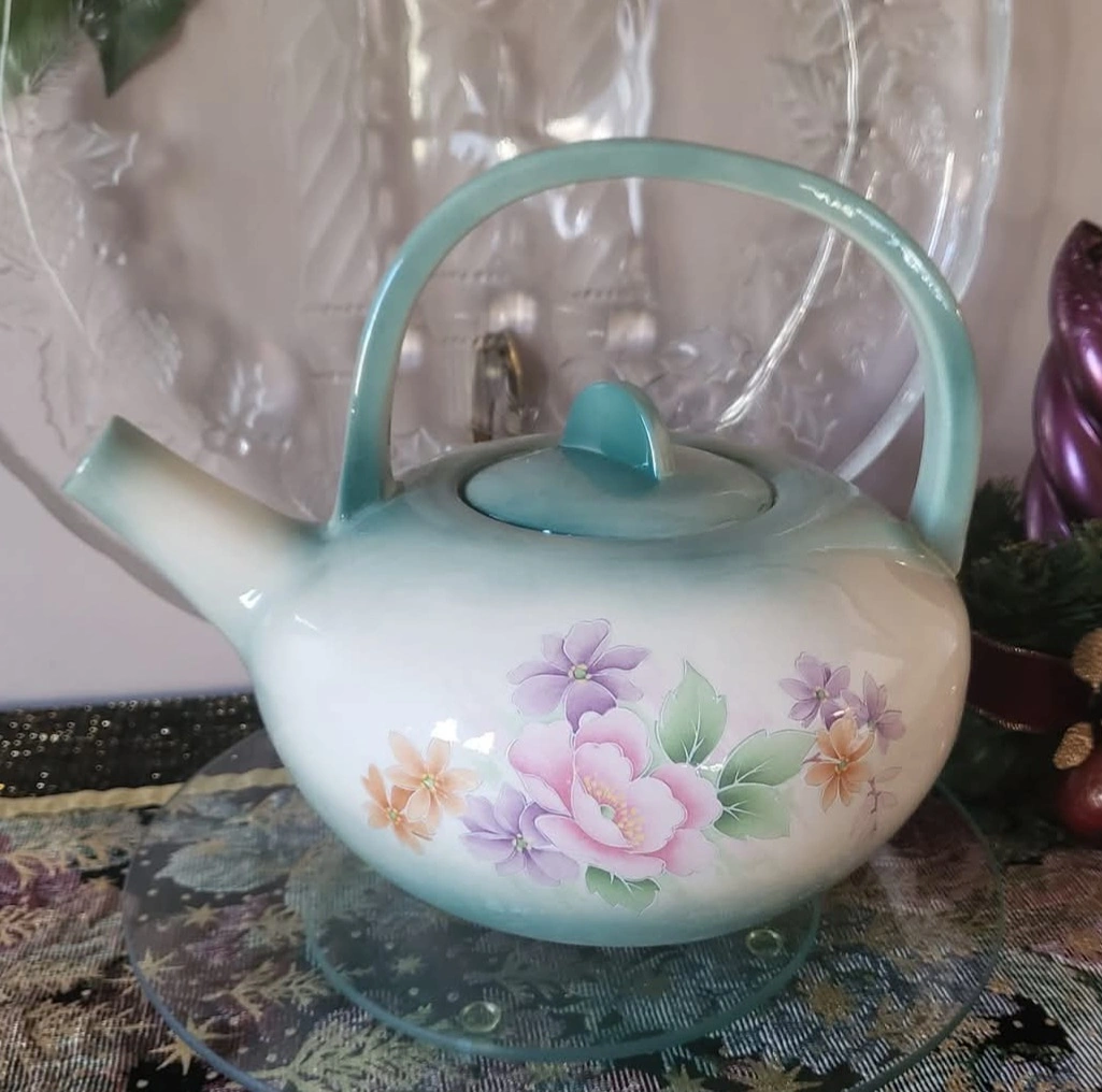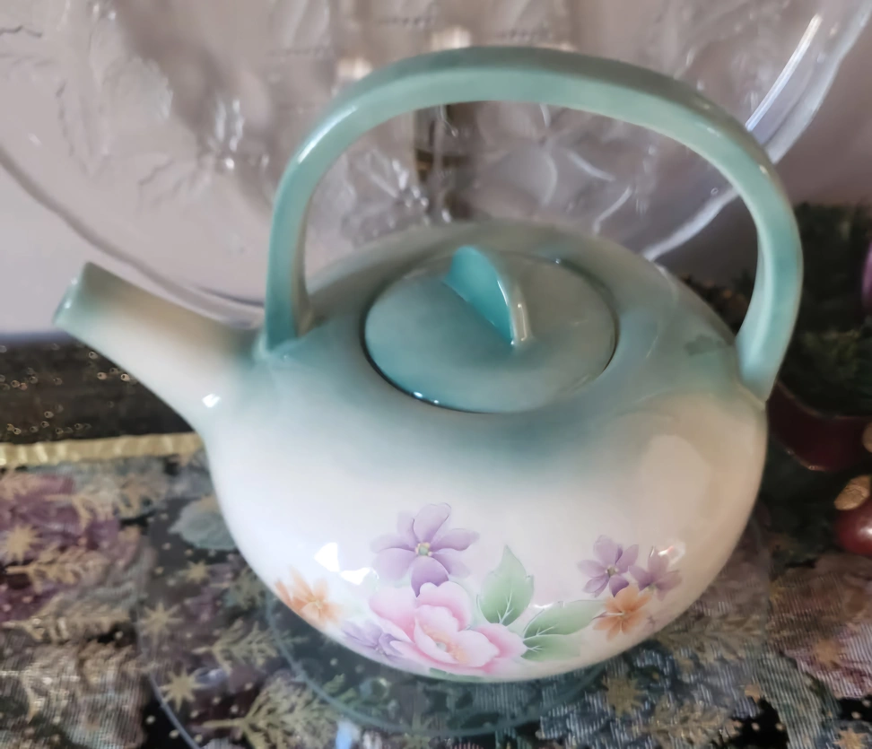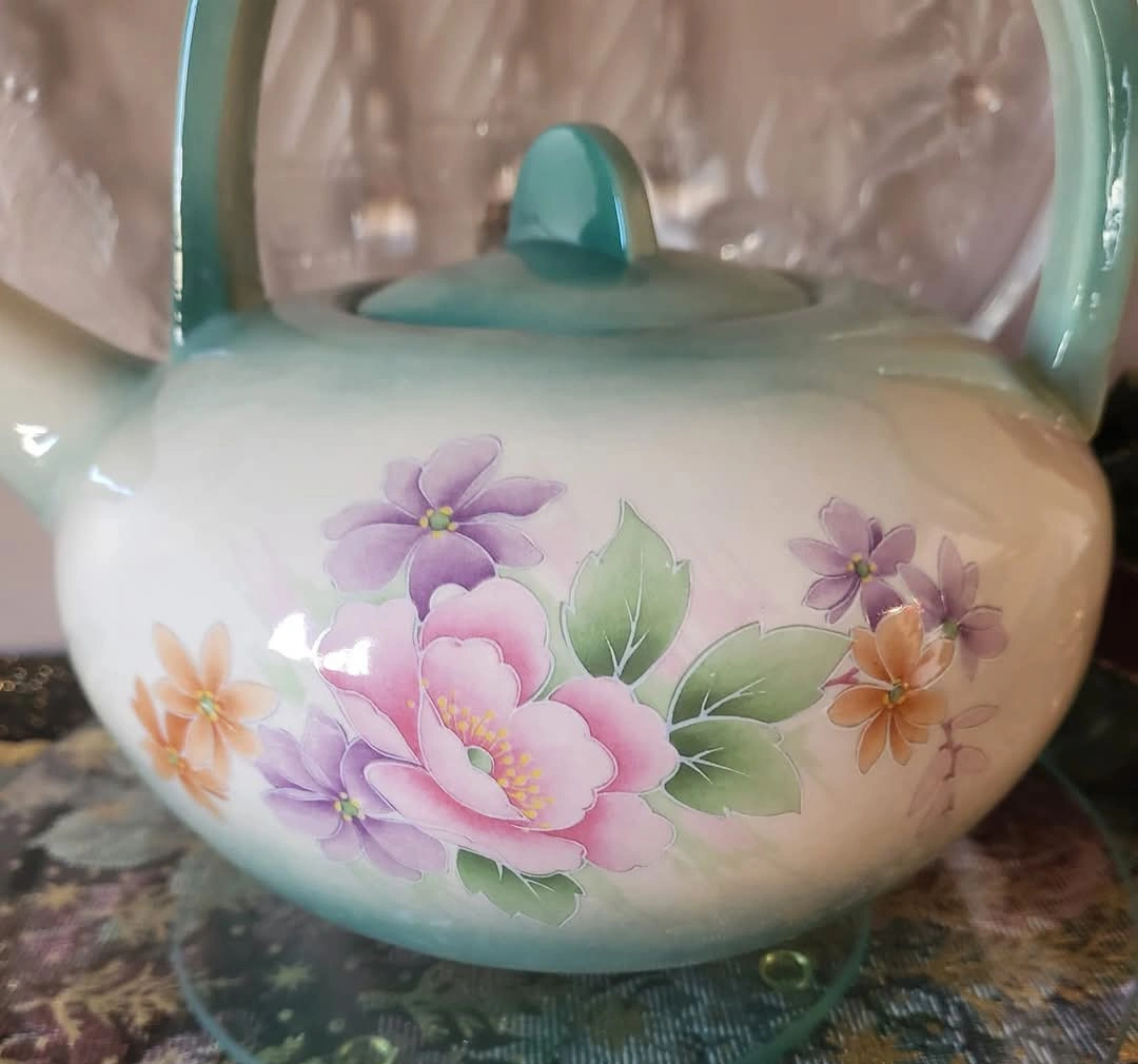 Lovely Vintage Floral Teapot with Soft Green coloring accents