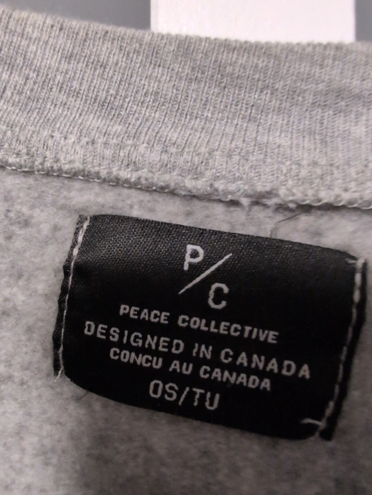 Grey cropped sweatshirt. Designed in Canada. One size fits most.