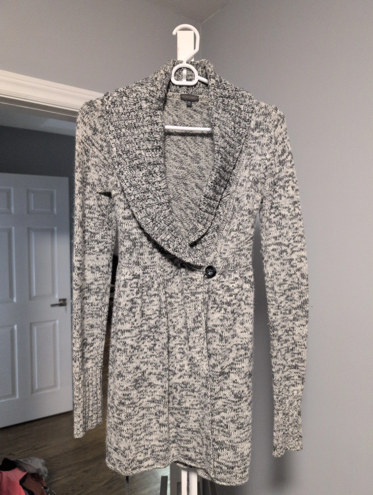 Cozy warm knit sweater. Features a shawl collar. Size XSmall (but would fit small too).