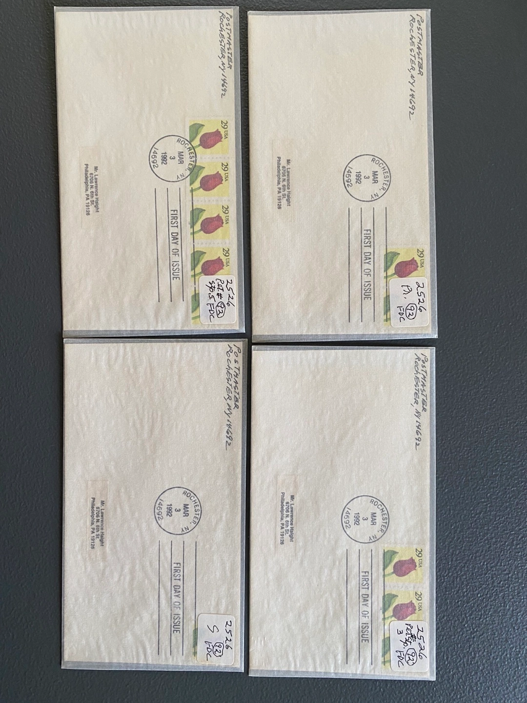 4 USA FDC with 4 diff number of Scott 2526 stamps #freecycle